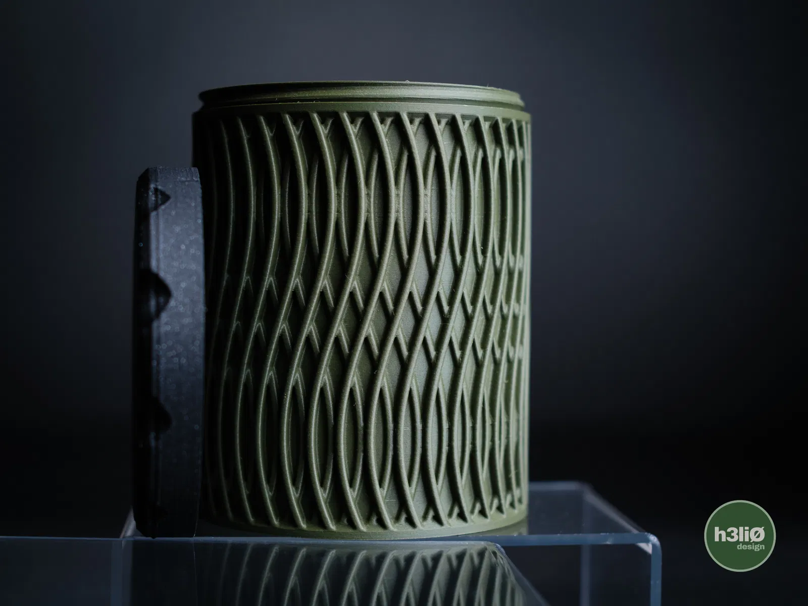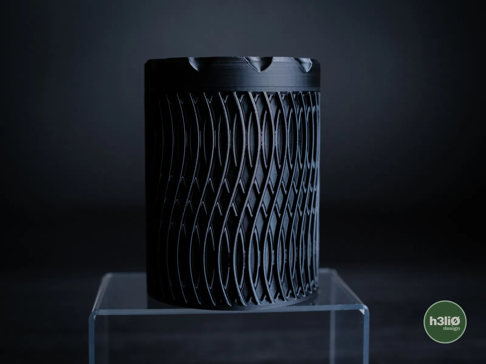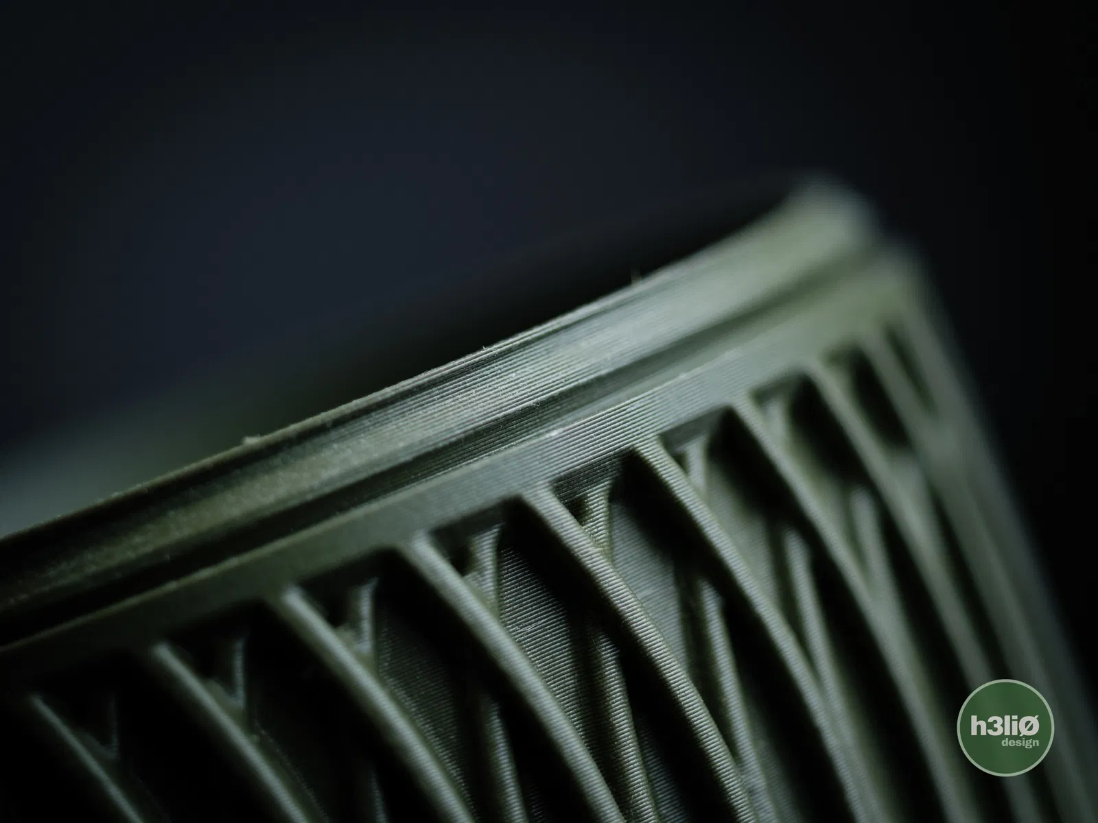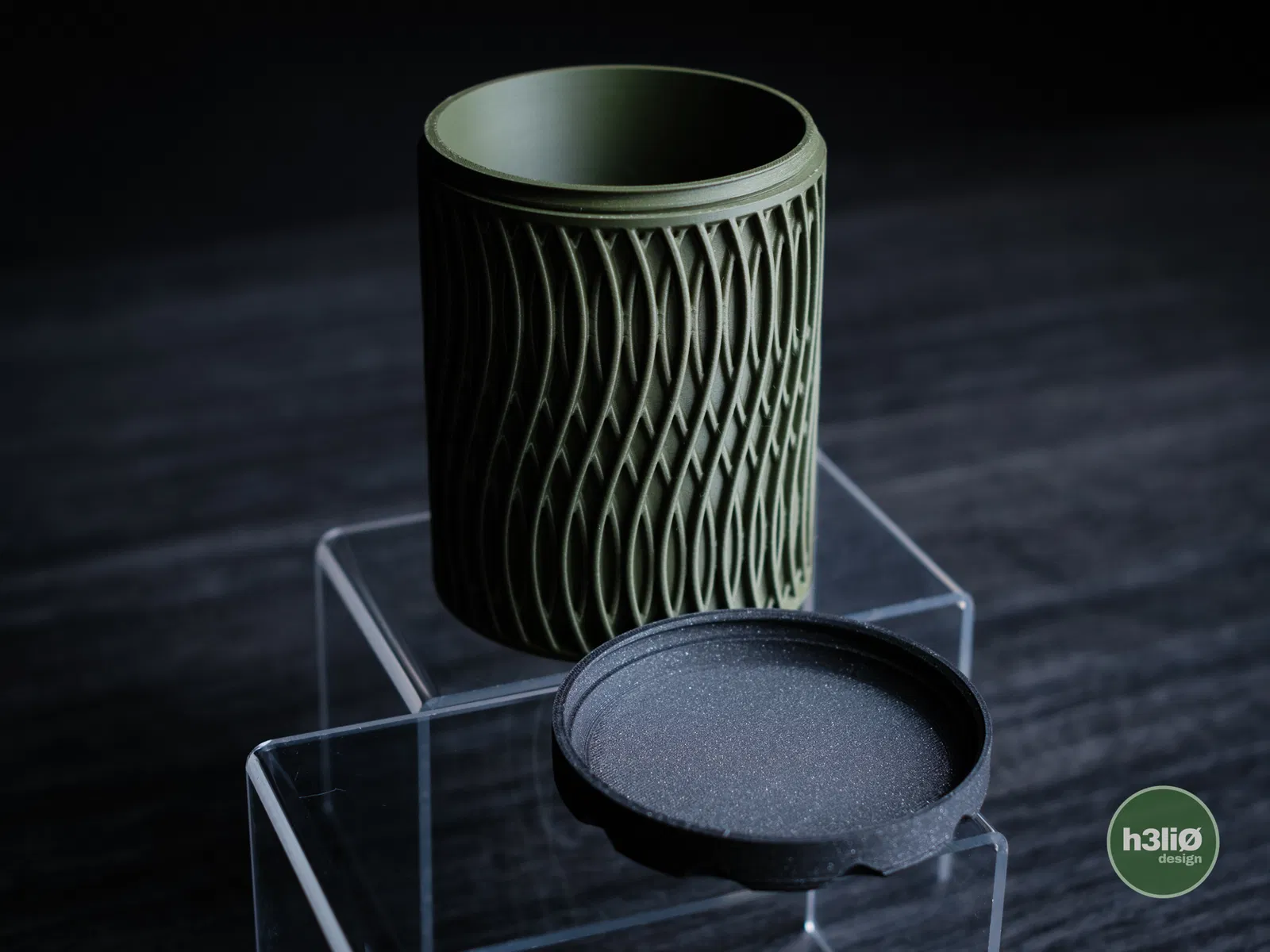 Cái hộp đựng có nắp vặn "ruck · container" tối giản, thiết kế vừa đẹp vừa tiện dụng. Kích thước hộp ~ 85x85x105mm, nắp ~ 85x85x13mm. In bằng PLA, vòi phun .40mm, lớp .20, lòng trong 15% gyroid. Bao gồm file 3mf và STL.