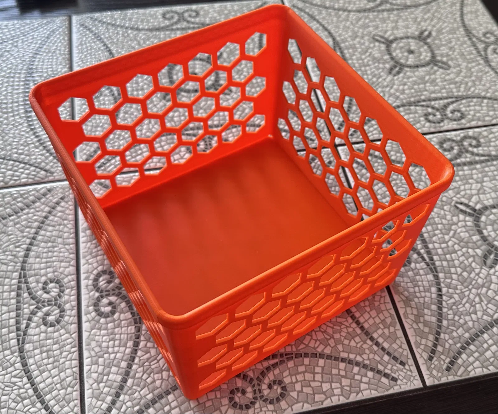 Giỏ hàng đan lát theo tham số với họa tiết tổ ong. Một thiết kế độc đáo, phù hợp để lưu trữ đồ đạc với vẻ ngoài hiện đại và tinh tế.