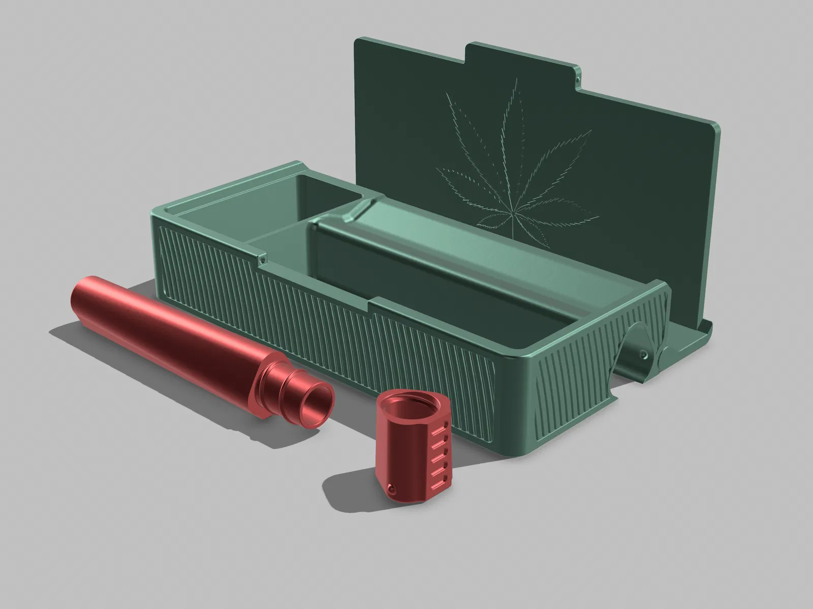 Hộp đựng đồ hút, giấy cuốn và các phụ kiện khác, có bệ để cuốn và ống đựng điếu kín đáo bên dưới. Lý tưởng cho việc du lịch, giữ cho điếu của bạn an toàn và sẵn sàng.