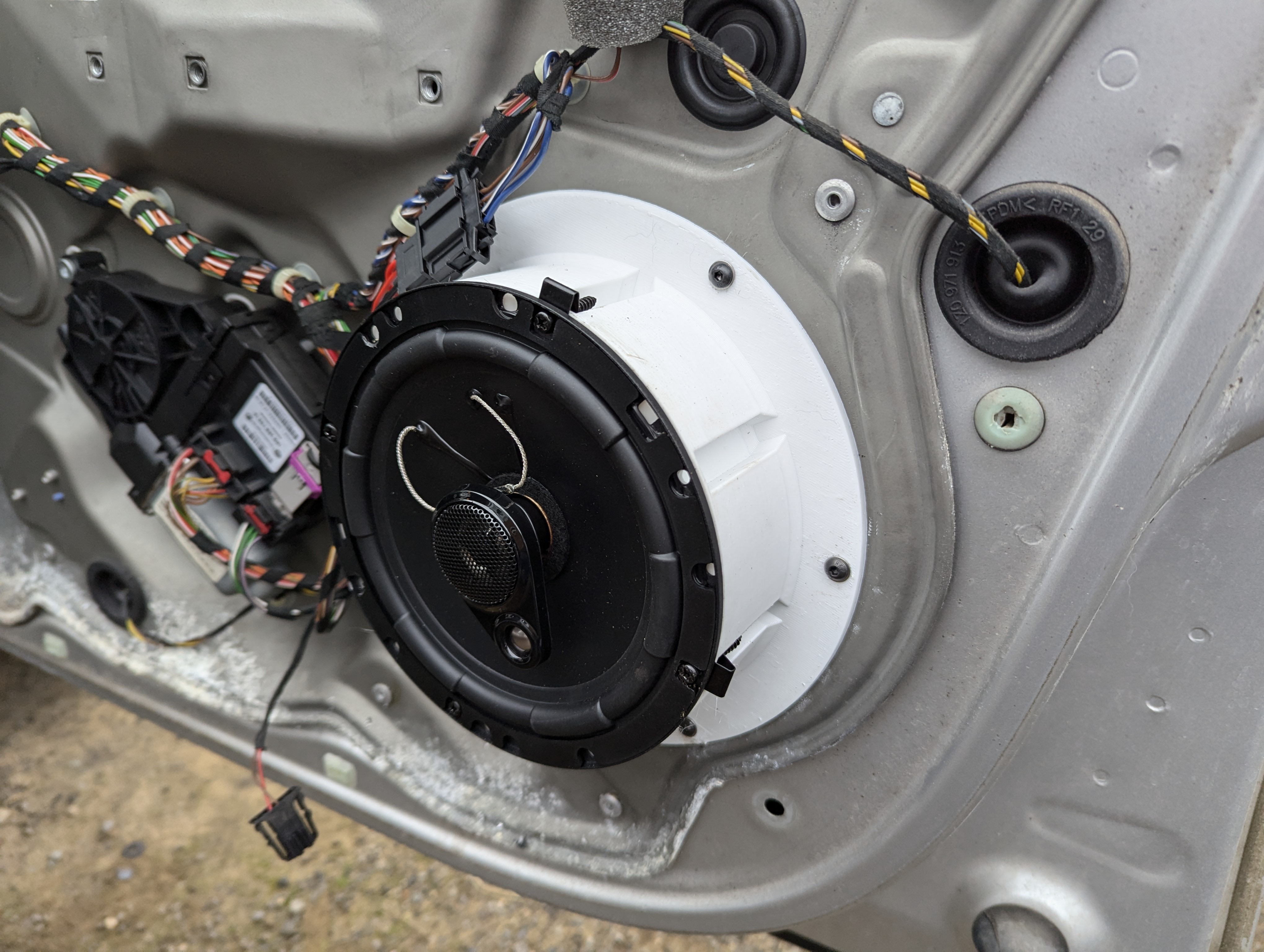 Tui cần cách để gắn loa aftermarket vô cửa trước của Skoda Octavia 2 nên tui nghĩ ra mấy cái adapter này. Nó sẽ giúp mấy ông gắn loa chuẩn 17cm/6.5" vô ngay chỗ loa zin luôn. Mấy ông phải khoan cái đinh tán giữ loa zin ra, rồi dùng ốc và tán M4 để gắn cái adapter này vô.