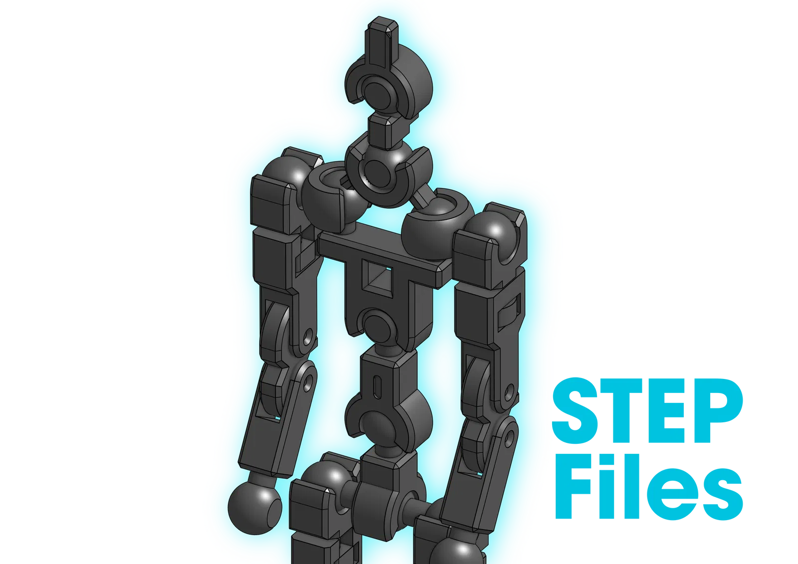 File STEP khung sườn cho nhân vật cử động được DUMMY 13 của @soozafone. File được tạo thủ công từ STL, giúp việc chỉnh sửa dễ dàng hơn. Bao gồm toàn bộ khung sườn với các khớp đã được lắp ráp.