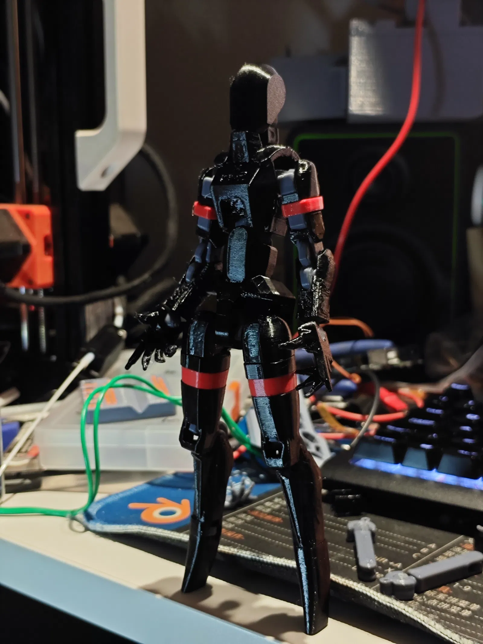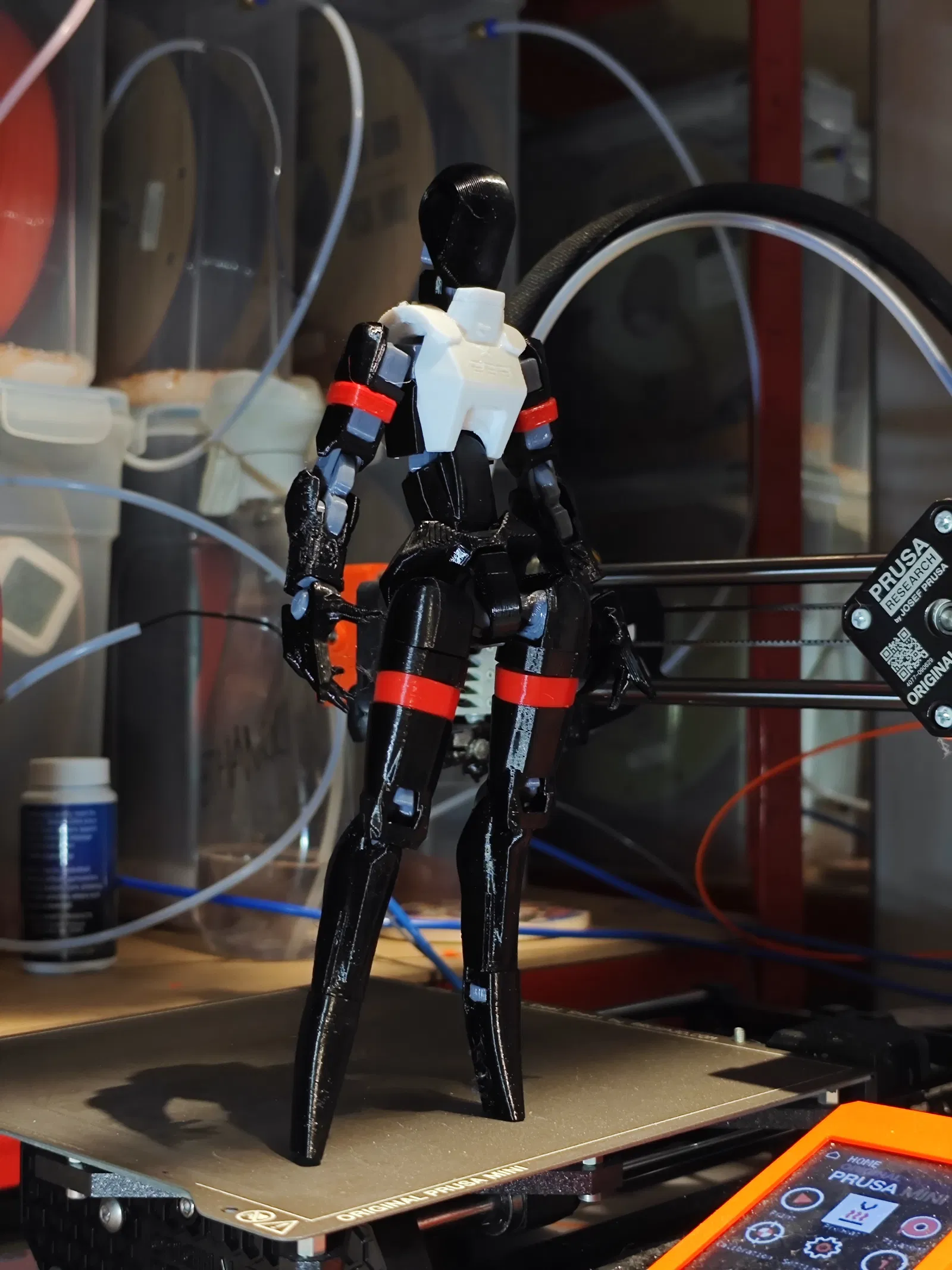 Cô ấy đứng ổn nếu tạo dáng gần như thẳng đứng, nên dùng chân đế có thể điều chỉnh, có lẽ cần làm thêm phần bàn chân.