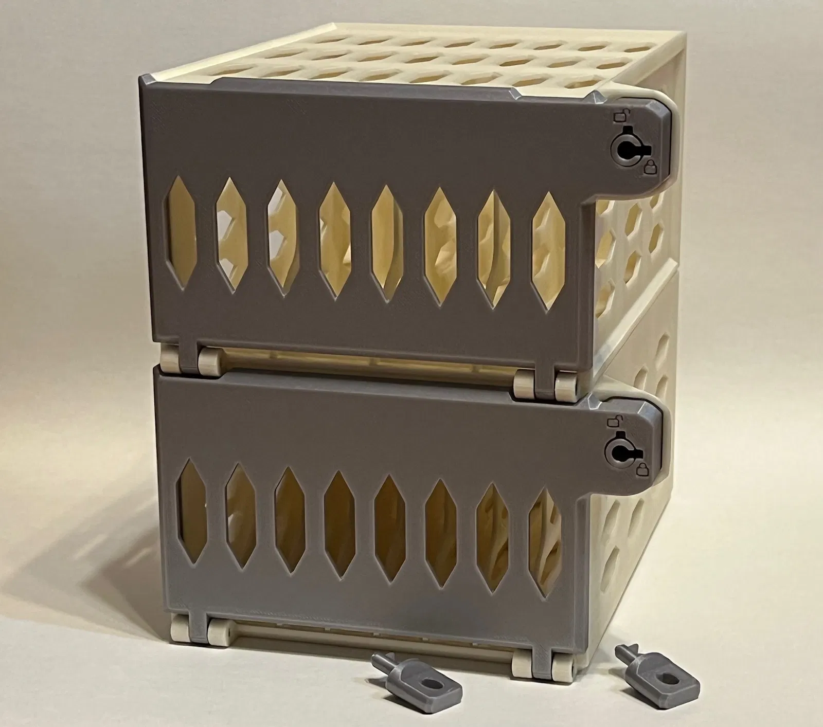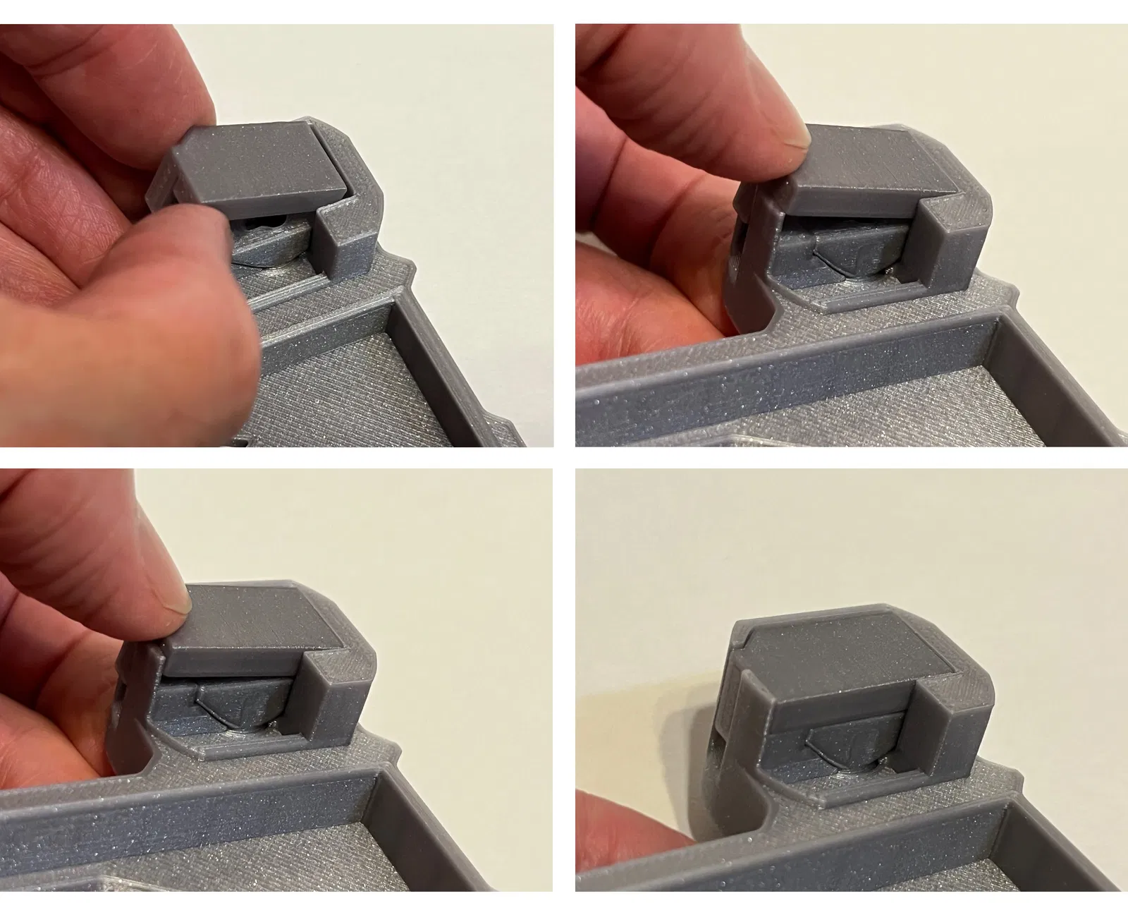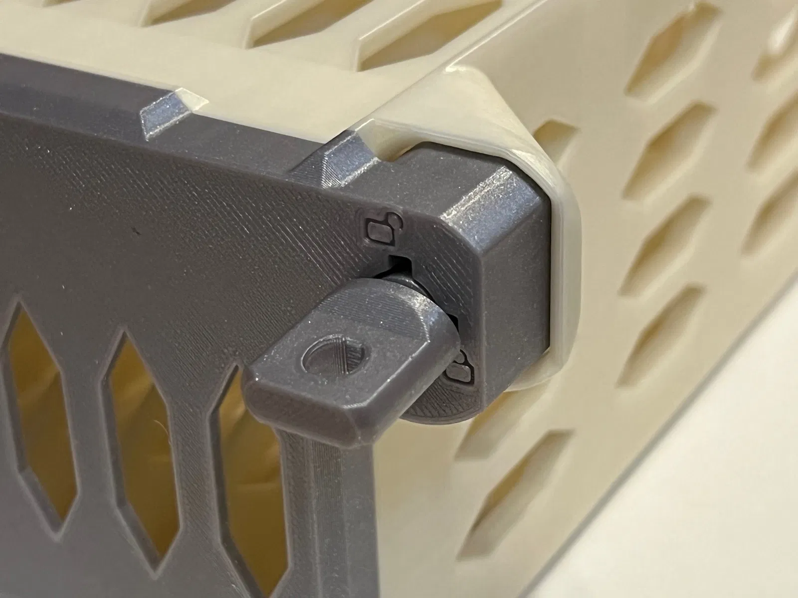 QUAN TRỌNG: khi cắm chìa khóa, hãy đẩy hết cỡ vào cho đến khi chìa khóa phẳng với bề mặt trước của khóa. Điều này sẽ ngắt lẫy khóa trên nắp khóa để trụ khóa có thể xoay. Cố gắng xoay chìa khóa mà không đẩy hết cỡ trước sẽ rất khó khăn, và cuối cùng có thể làm gãy lẫy khóa. Nếu vì lý do nào đó mà lẫy khóa bị gãy, nó có thể được sửa chữa bằng cách in và gắn một nắp khóa mới.