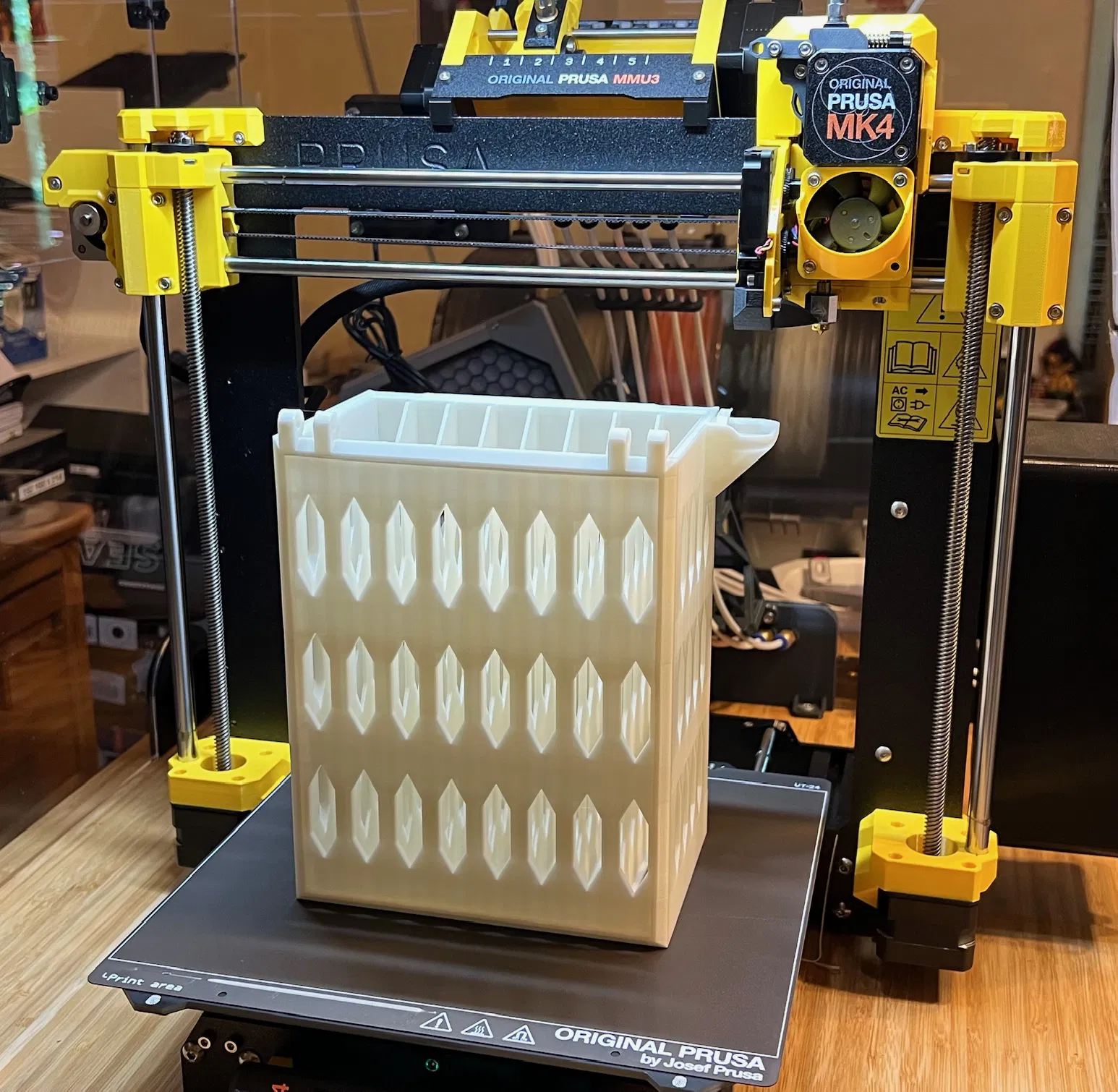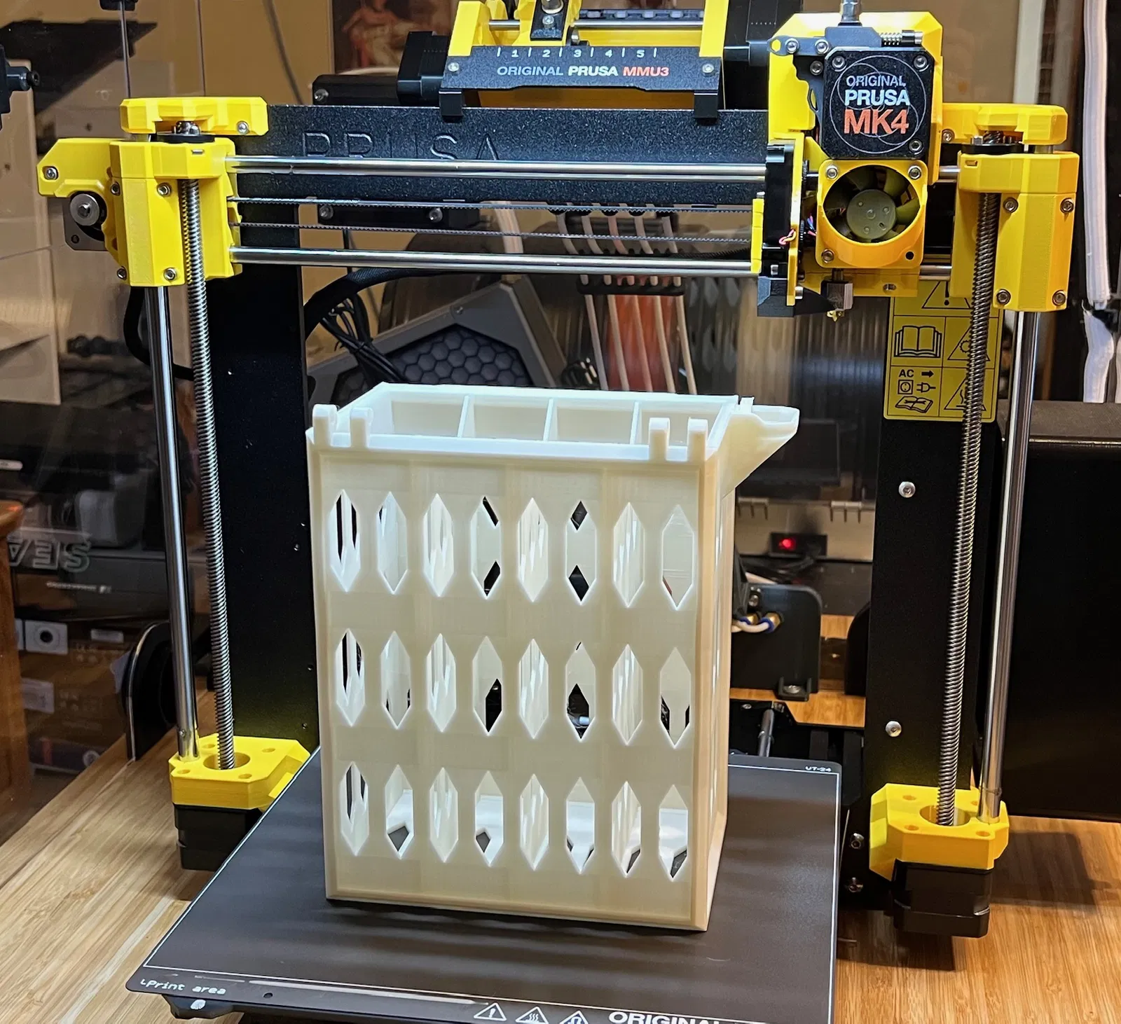 - In bằng PLA ở độ cao lớp 0.2mm, đầu phun 0.4mm và 15% infill.