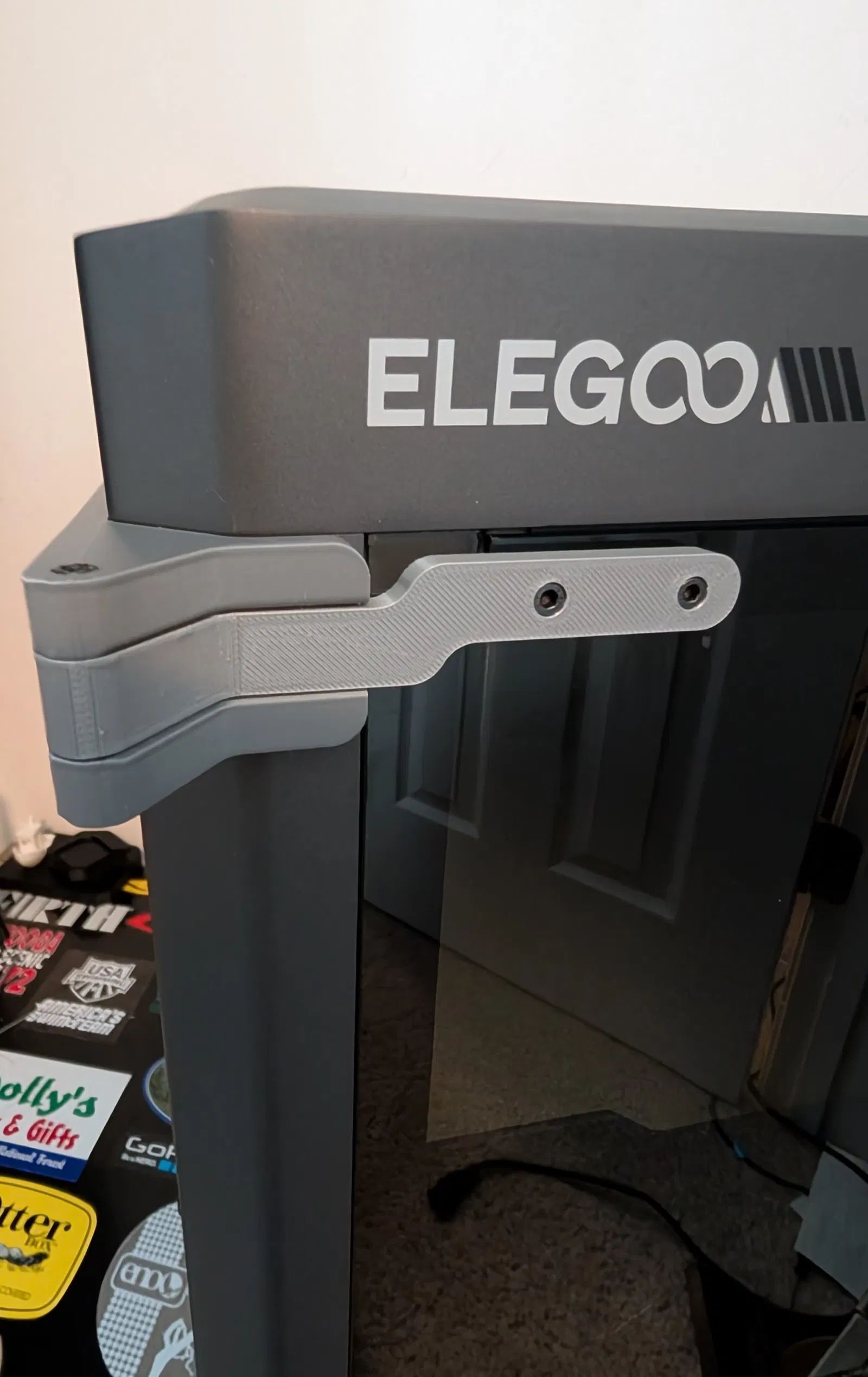 Thay thế bản lề zin bằng bộ bản lề cho phép mở cửa hoàn toàn. Bộ bản lề này giúp bạn mở rộng không gian làm việc và dễ dàng thao tác với máy in Elegoo Centauri Carbon.