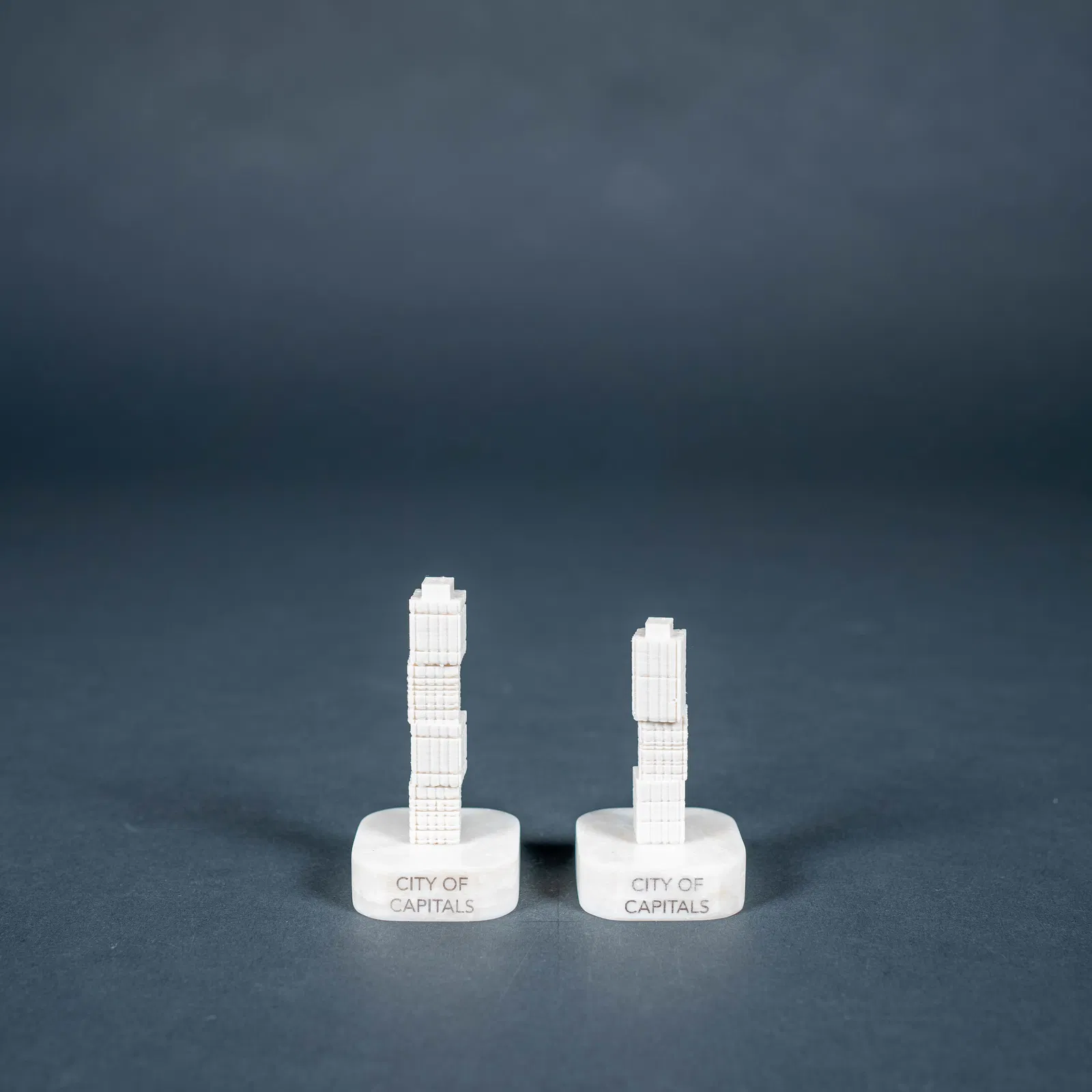 Bộ cờ vua "Song Sinh" lấy cảm hứng từ các tòa tháp đôi nổi tiếng thế giới, mỗi quân cờ là một biểu tượng kiến trúc độc đáo. Vua là Tháp Đôi Petronas, Hậu là Khách sạn JW Marriot Marquis. Tượng là Tháp Emirates, Mã là Cảng Tài chính Bahrain, Xe là City of Capitals, và Tốt là The Cullinan. Toàn bộ được làm từ nhựa PLA và Corian, với các đế CNC tinh xảo và tùy chọn thêm thử thách chơi cờ.