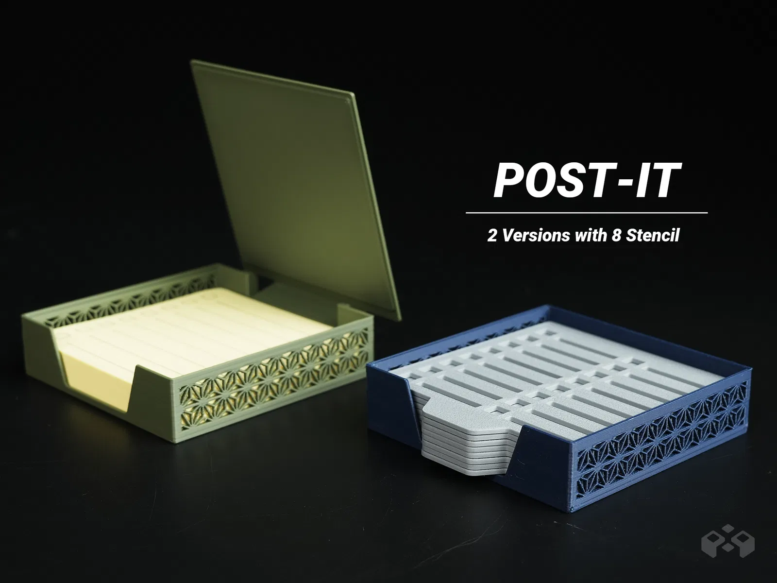 Cái đế đựng giấy ghi chú này có 2 kiểu nha — Kiểu Cơ Bản (Basic) và Kiểu Có Nắp (Lid Type). Mỗi bộ sẽ đi kèm
