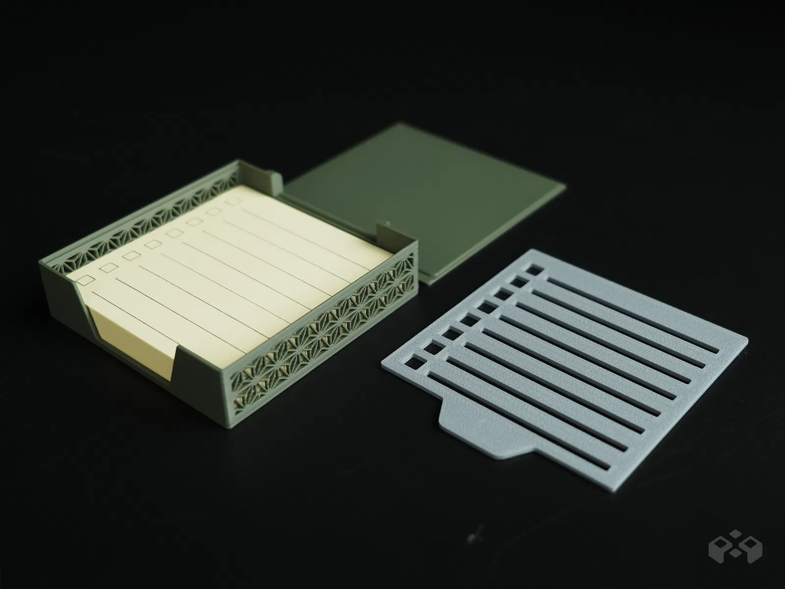 Khay đựng giấy ghi chú Kumiko với thiết kế sáng tạo, có 2 kiểu: Cơ Bản và Có Nắp. Kèm 8 mẫu vẽ đa năng, giúp bạn sắp xếp công việc, lịch trình, ý tưởng. Thiết kế tối giản, hiện đại cho bàn làm việc.