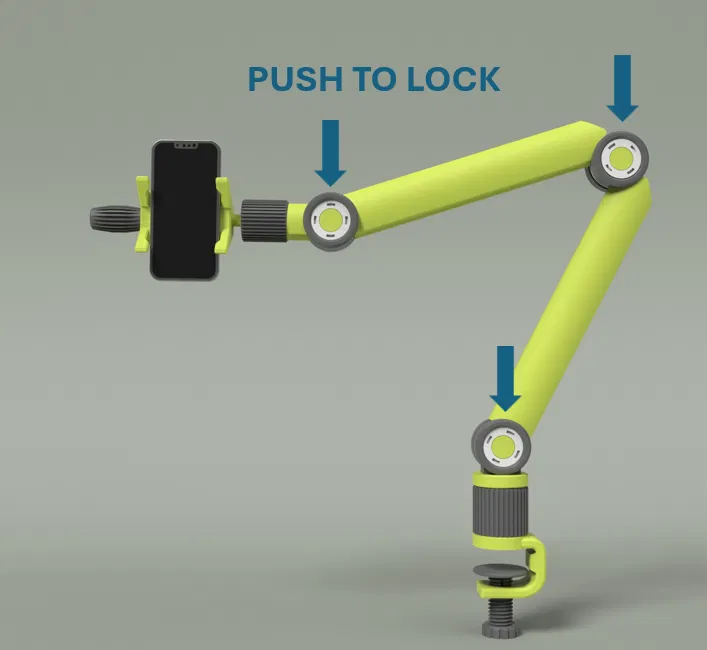 Giới thiệu cánh tay khớp nối in 3D hoàn chỉnh với 6 bậc tự do, được thiết kế để nâng cao trải nghiệm gắn điện thoại và máy ảnh của bạn. Điều làm cho cánh tay này khác biệt là cơ chế khóa sáng tạo, khóa chắc chắn từng khớp nối một cách dễ dàng. Nói lời tạm biệt với các bu lông khó xoay và xin chào một cách nhanh chóng, dễ dàng để định vị thiết lập của bạn cho đúng.