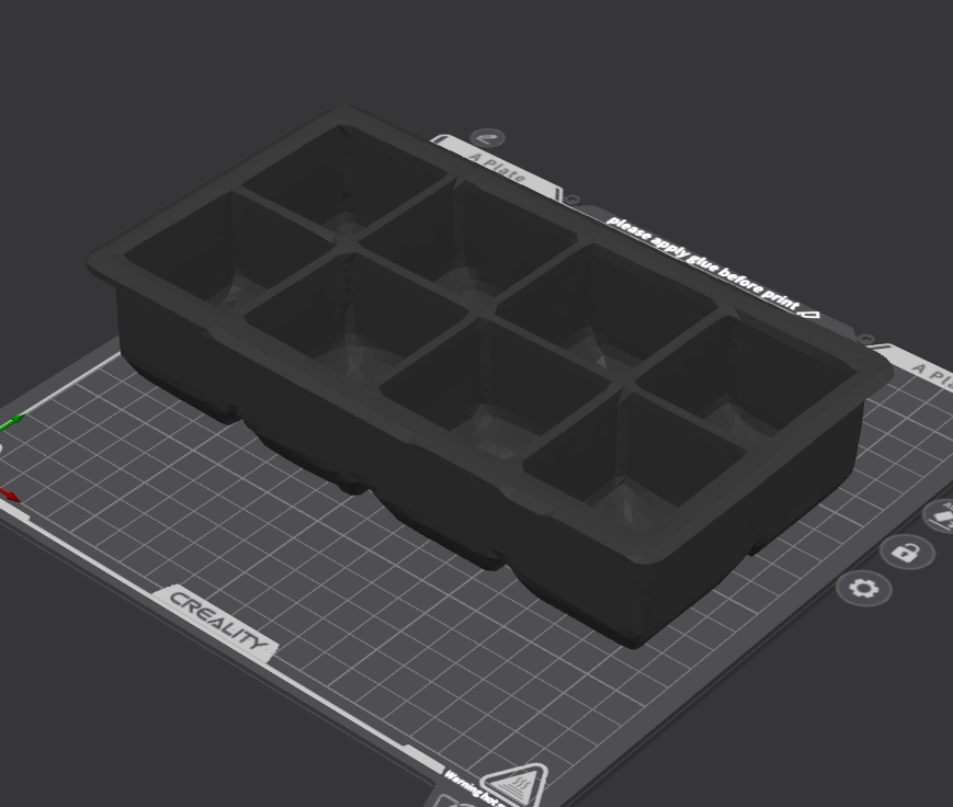 Cái khay làm đá xài ngon lắm nè, mỗi lần làm được 8 viên. In bằng TPU hoặc PLA đều được nha. Rất hữu ích để làm đá trong tủ đông.