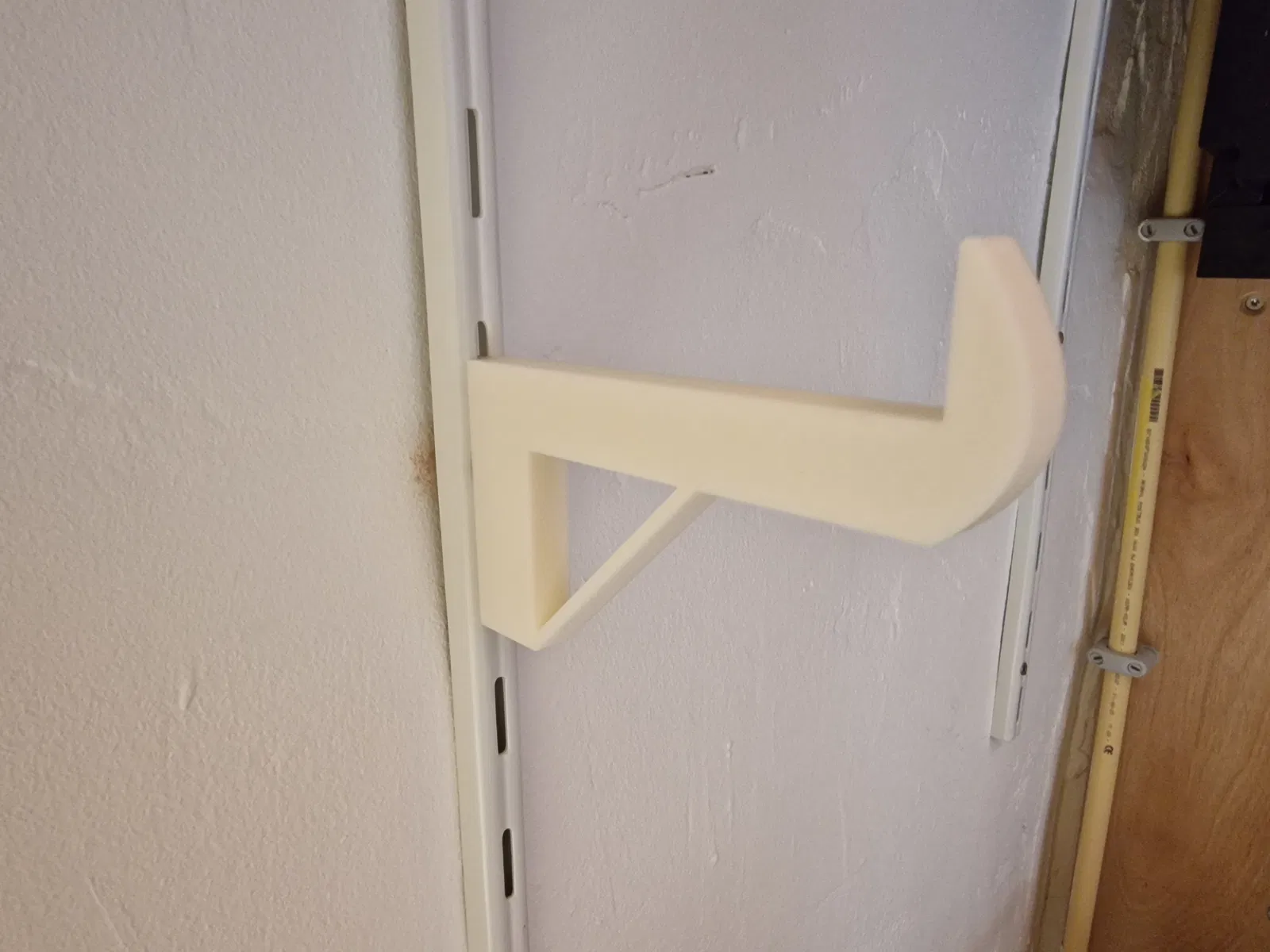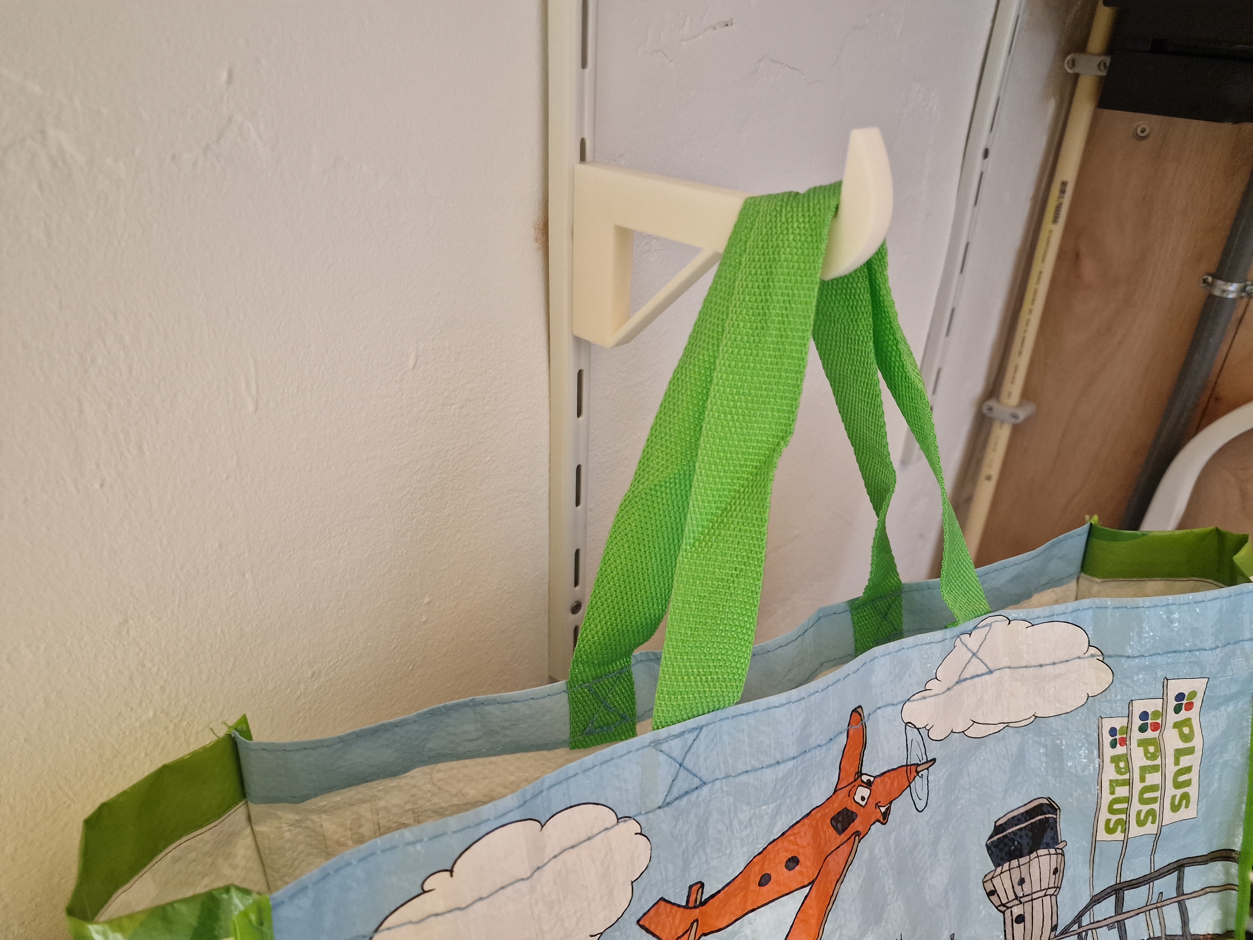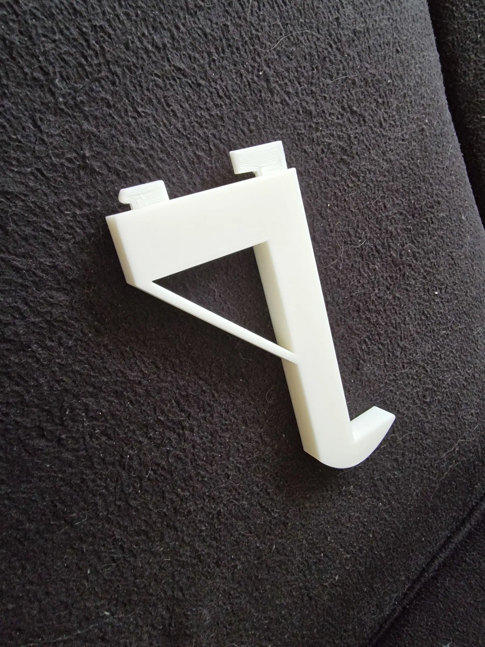 Dùng để treo túi, móc này gắn vào ray treo tường. Đã in từ nhựa PLA với 100% độ đặc ruột ở phần giữa và có support ở đế. Hãy cho tôi biết nếu bạn biết tên chính xác của loại ray này nhé!