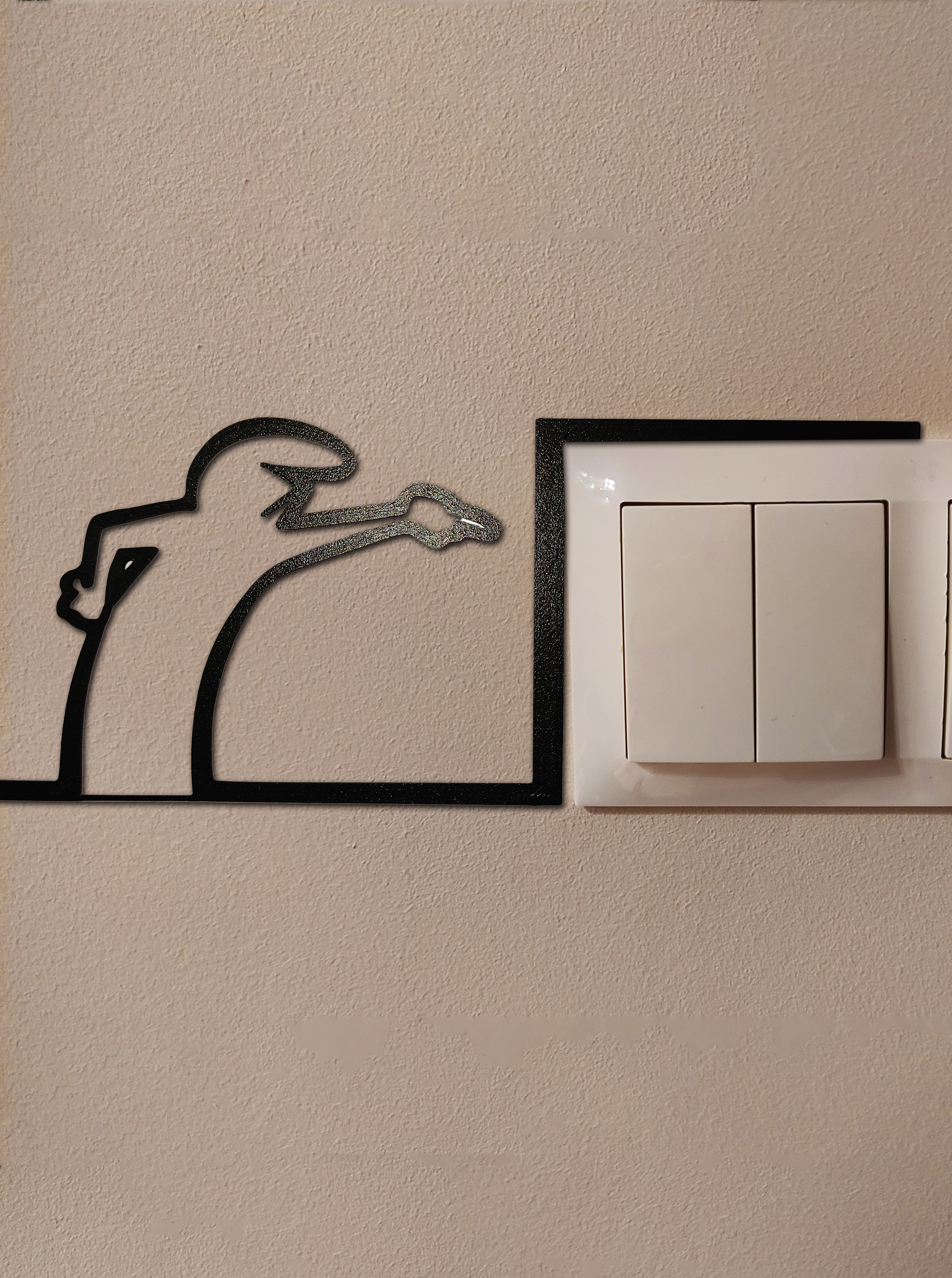 Thêm chút hài hước cho ngôi nhà của bạn với mô hình 3D sáng tạo này, lấy cảm hứng từ bộ phim hoạt hình huyền thoại "La Linea - Balum Balum" thập niên 70! Nhân vật tối giản nhưng đầy biểu cảm này dường như đang tương tác với công tắc, ổ cắm hoặc nút bấm, tạo hiệu ứng thị giác vui nhộn.