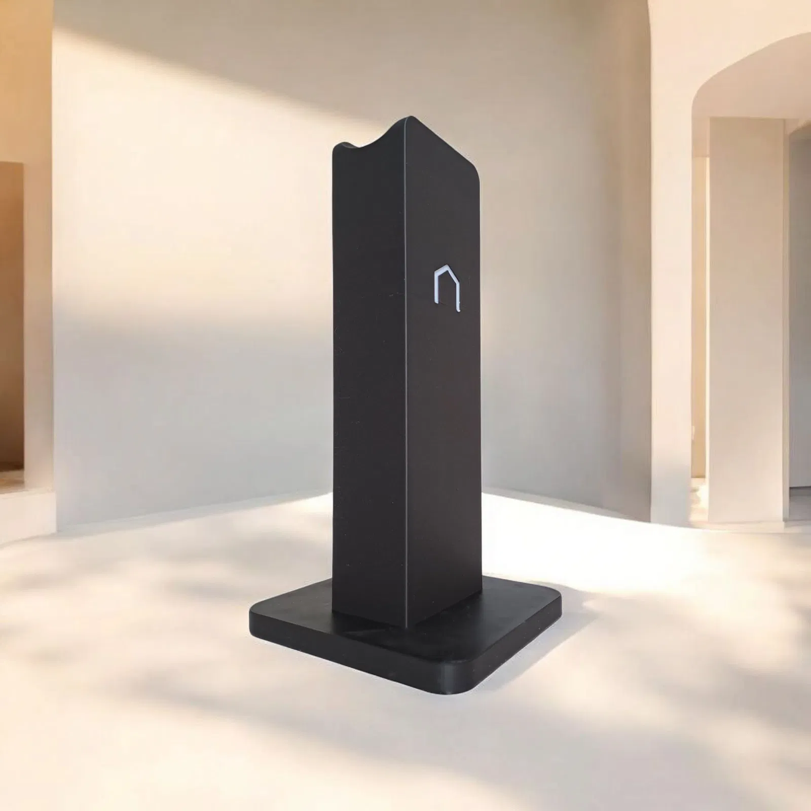 Cái giá đỡ tai nghe tối giản này trông rất thời trang lại in nhanh và dễ nữa. Mặt trước có in logo theo phong cách hiện đại, bạn cứ tùy ý chọn màu nha. Kích thước tiêu chuẩn là 210 mm x 110 mm x 100 mm.