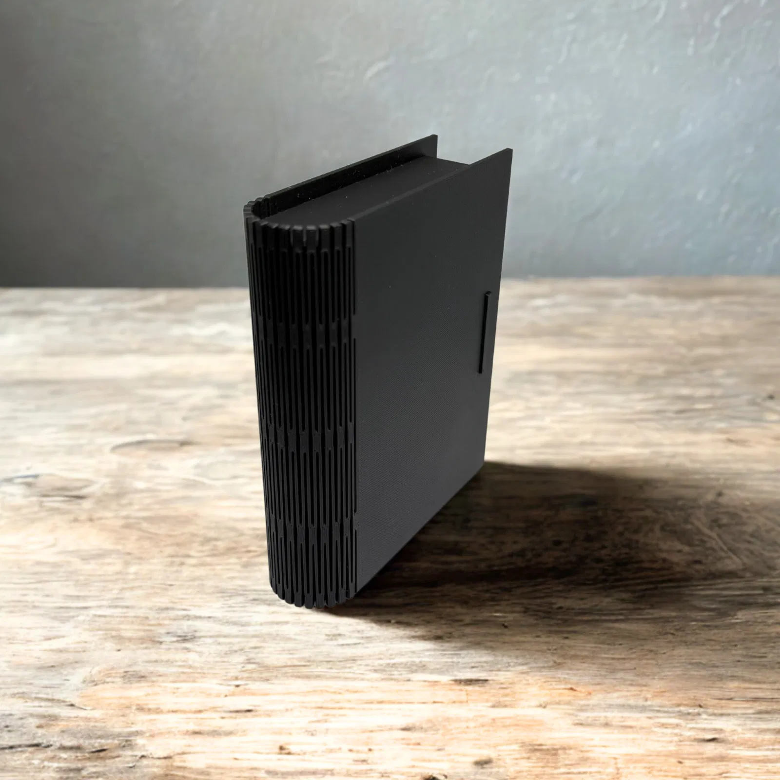 Hộp đựng hình quyển sách độc đáo, có thể in "print in place" mà không cần supports. Thích hợp để cất giữ đồ trang sức, chìa khóa, hoặc các vật dụng nhỏ khác, mang lại sự tiện lợi và phong cách cho không gian của bạn.