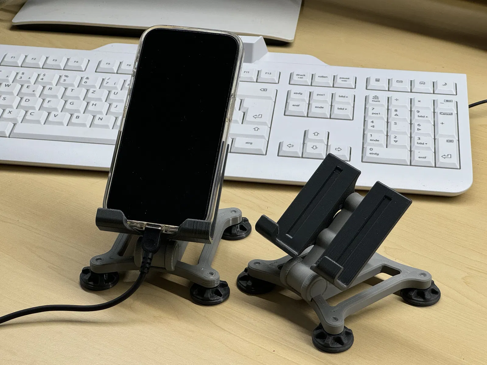 Giá đỡ điện thoại in được hết, có núm chỉnh độ nghiêng và rãnh cắm sạc tiện lợi. Lắp ráp đơn giản không cần phụ kiện. Thiết kế gốc của josh-3d rất đỉnh.