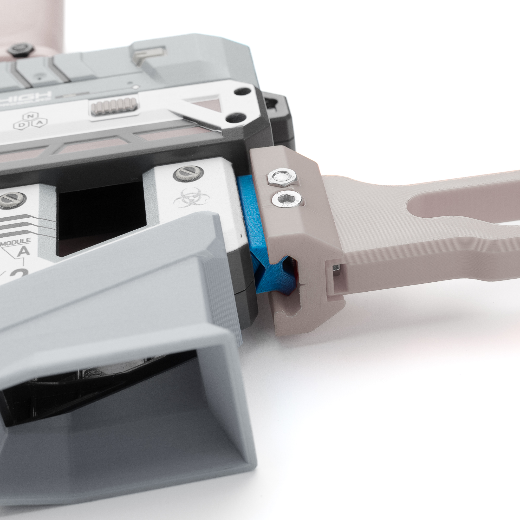 Phụ kiện gắn stock gọn gàng cho X-Shot Pro Fury X, thay thế nút nhả băng đạn phía sau bằng ray Picatinny. Tương thích với stock RedCowl và các loại stock Picatinny khác. Vẫn cầm thoải mái khi không gắn stock.