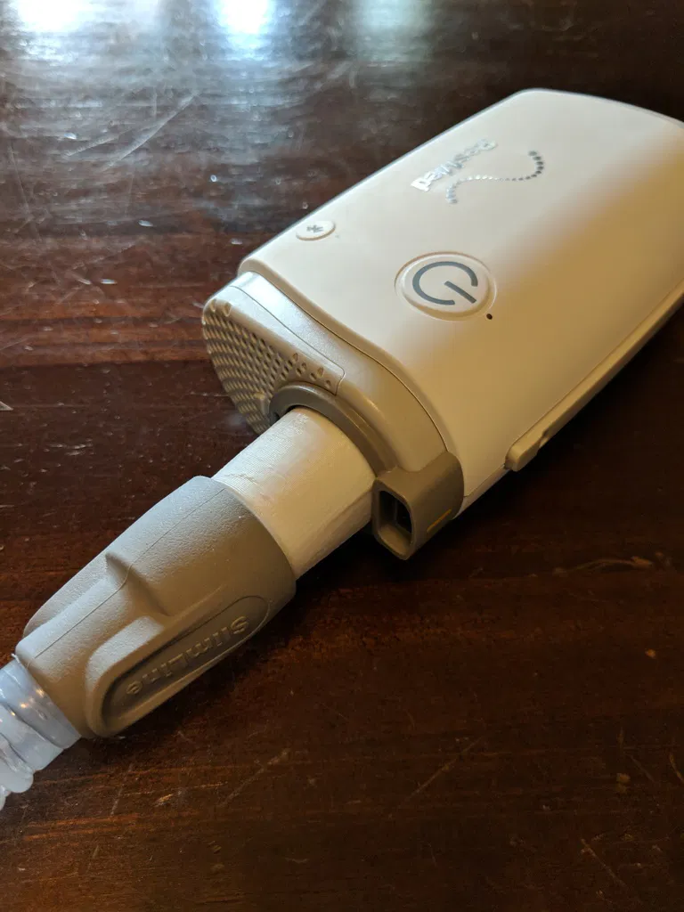 Đây là đầu nối dùng để kết nối máy Resmed Airmini với ống dây tiêu chuẩn 22mm. Sản phẩm này được in với máy Rigidbot original, không cần vỉ nướng, cần hỗ trợ, độ phân giải 0.1mm và độ đổ đầy 15%.