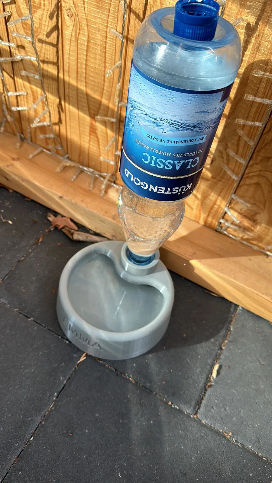 Chén nước độc đáo có ren gắn vừa chai PET, giúp thú cưng luôn có đủ nước. Thích hợp cho cả chó và mèo, giải pháp tiện lợi cho người bận rộn.