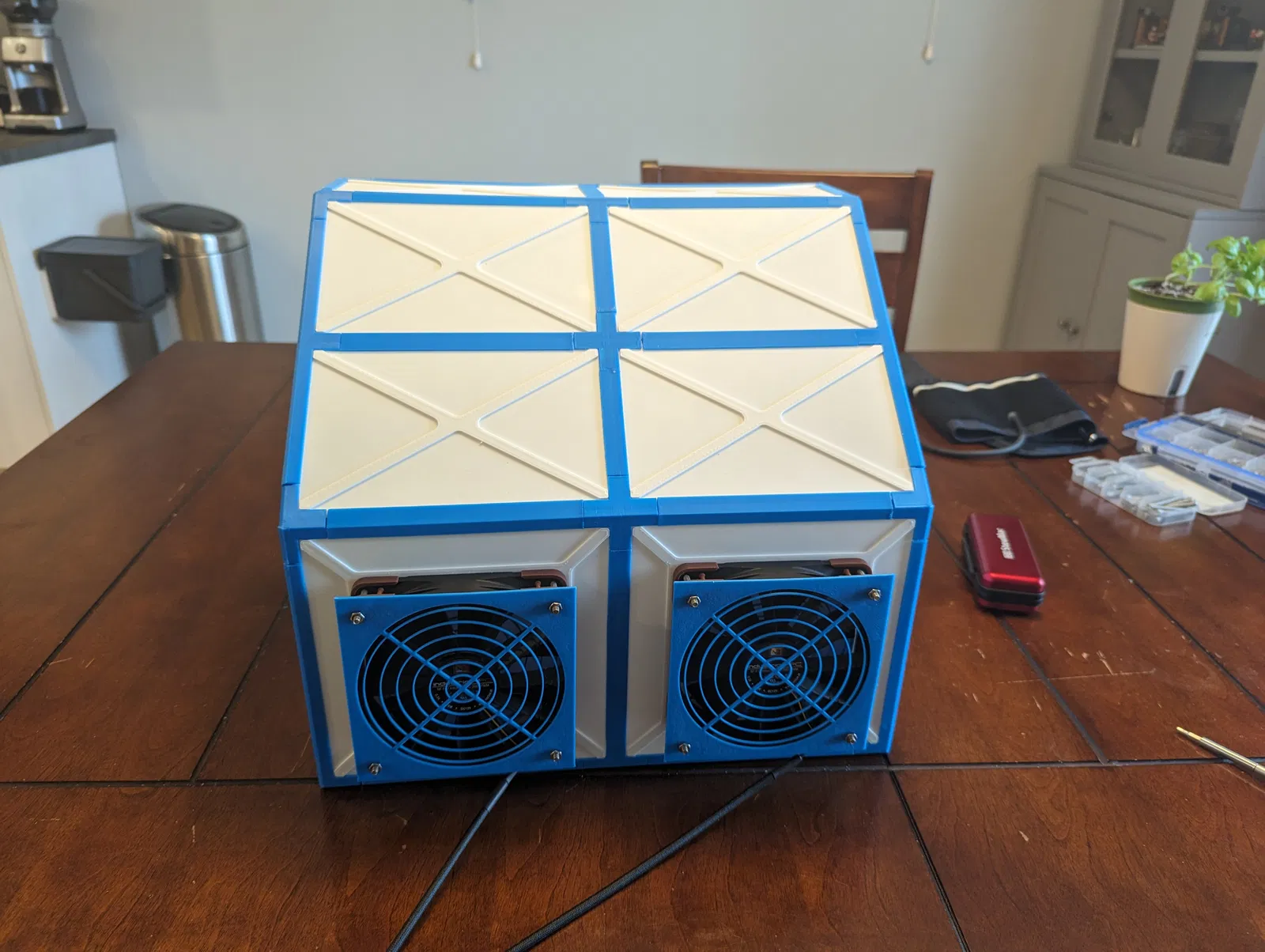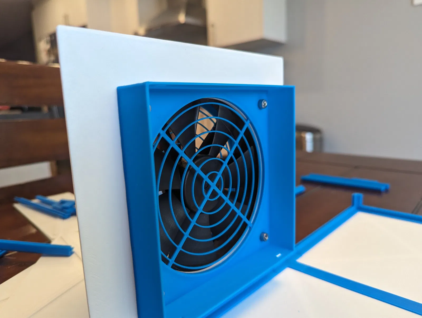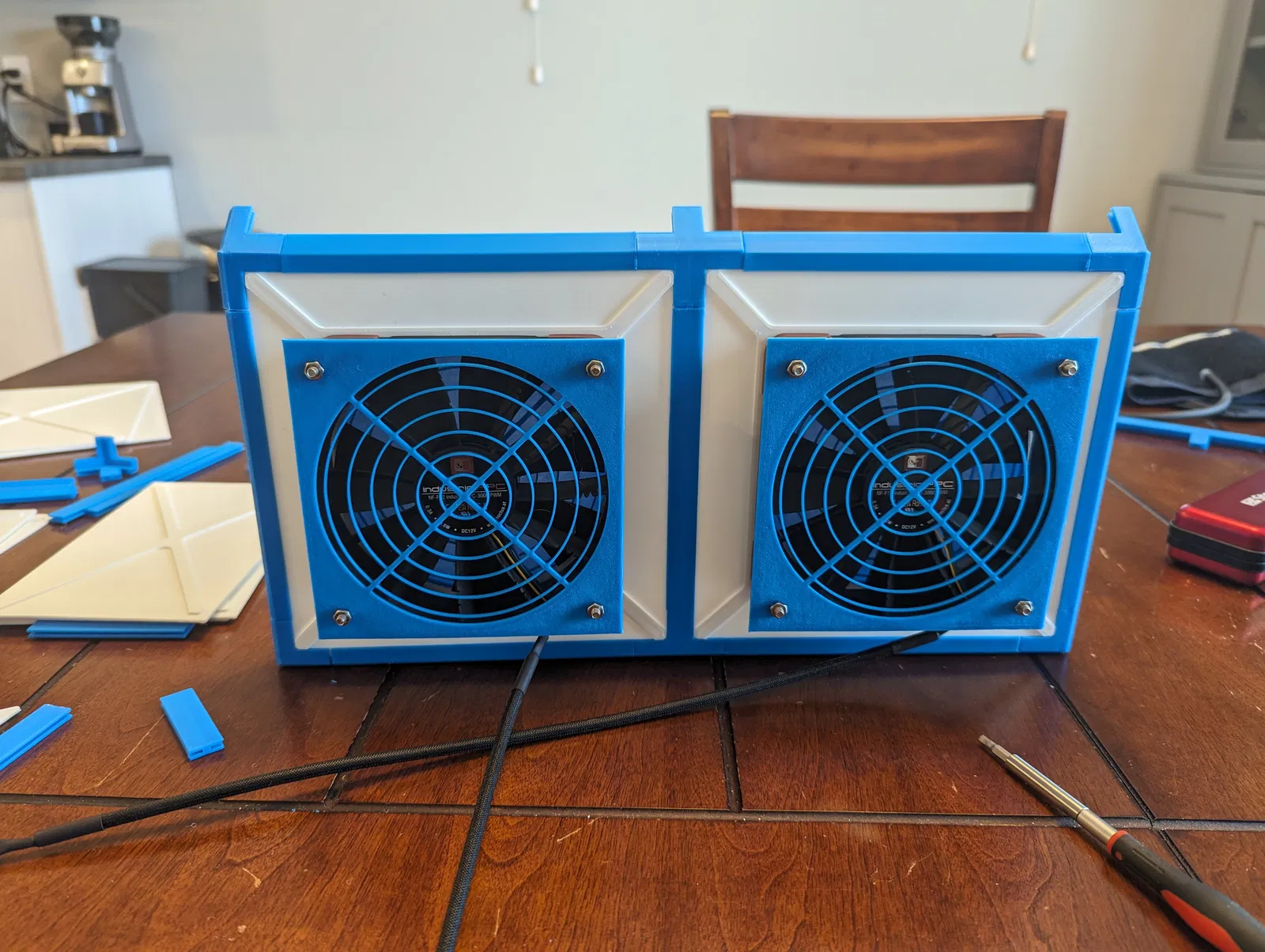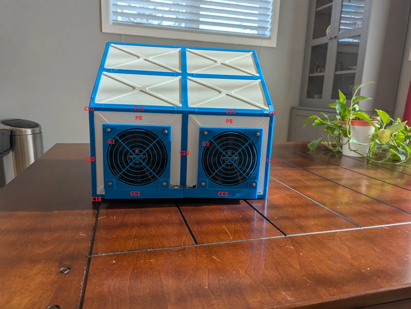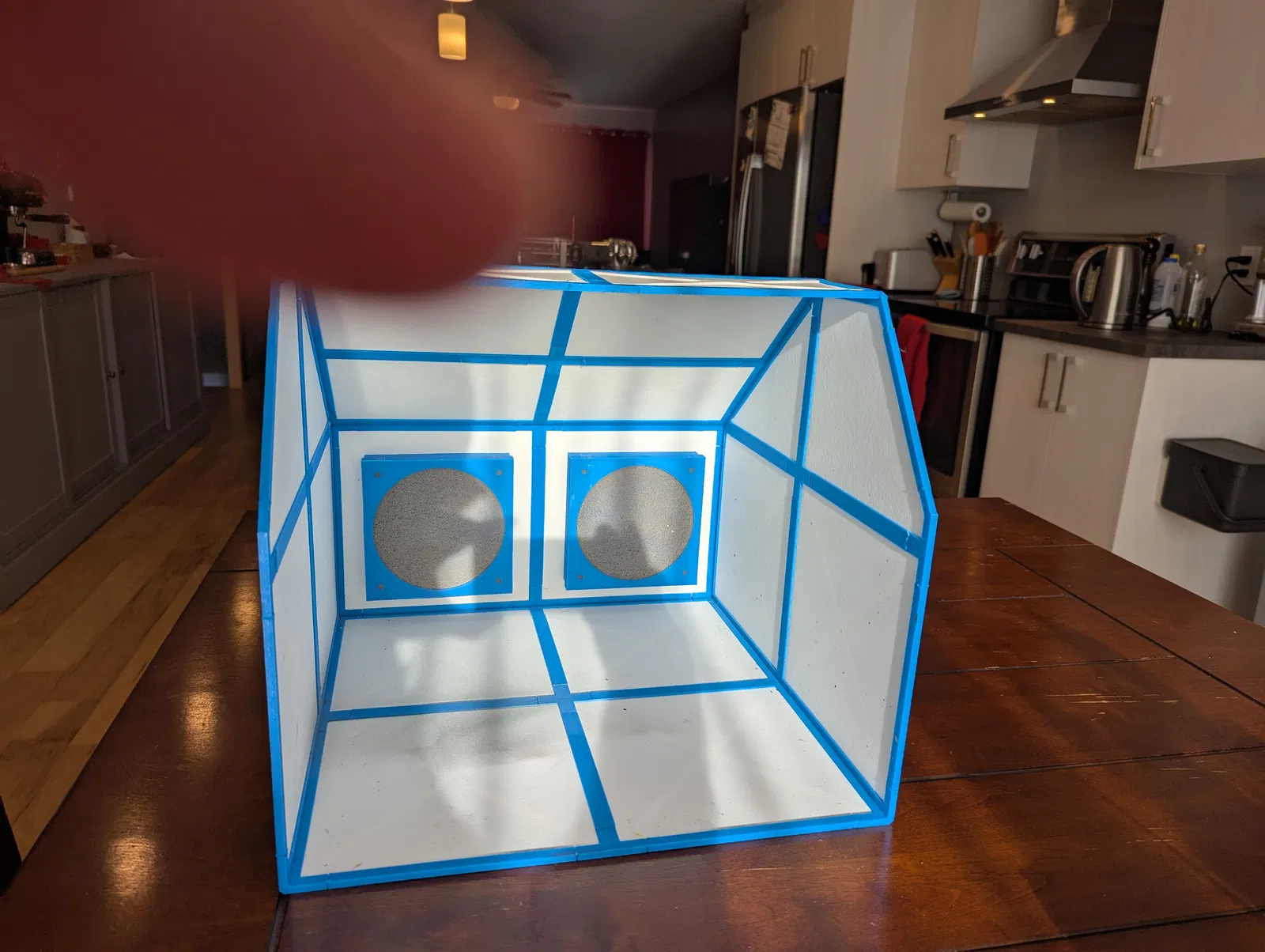 Buồng sơn cho airbrush này sử dụng 2 quạt PC 120mm áp suất tĩnh cao. Bộ lọc là loại thông thường được cắt vừa. Lắp ráp bằng keo siêu dính và hàn ma sát, hoặc có thể lắp ráp không cần keo nhưng sẽ kém chắc chắn hơn. Hướng dẫn lắp ráp có trong hình ảnh đính kèm. Tôi đã làm lại từ đầu để đơn giản hóa việc lắp ráp.