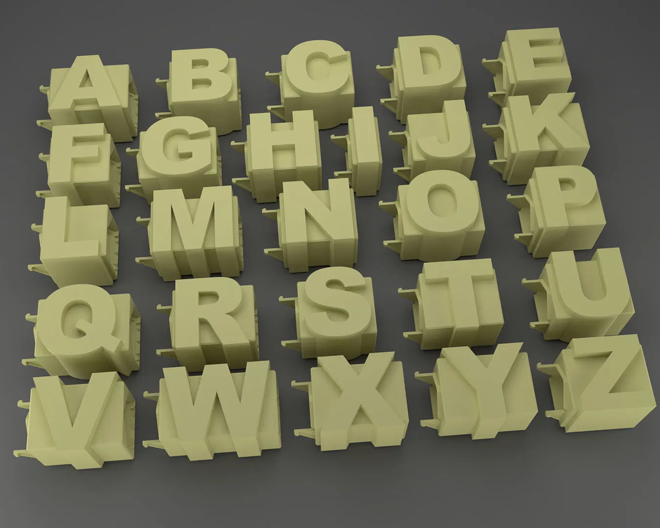 • Phần trên của các chữ cái có thể dễ dàng in bằng màu khác bằng cách thêm bộ chuyển đổi filament trong slicer, điều này cũng có thể thực hiện được mà không cần máy in đa màu.