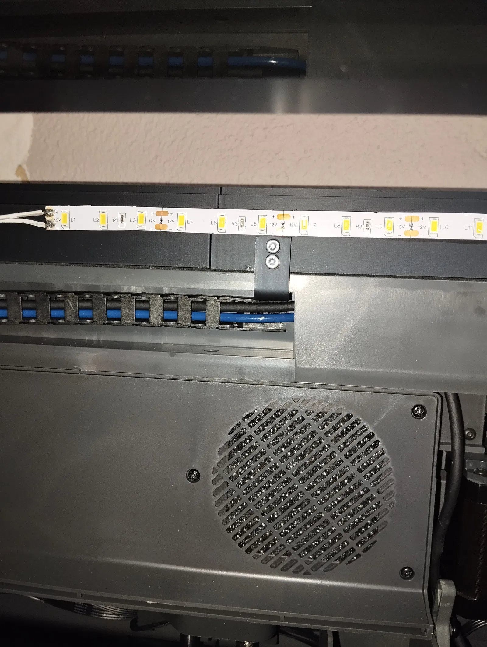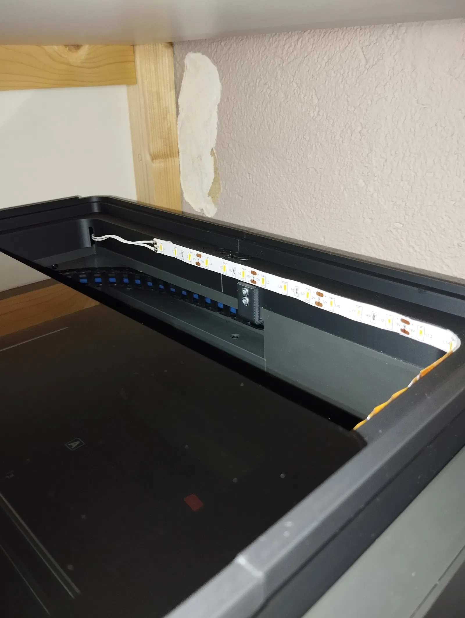 Phụ kiện tăng chiều cao cho máy Elegoo Centauri Carbon, cho phép kéo kính trượt về phía trước. Có khe luồn dây LED và tùy chọn chặn kính khi mở 17cm.