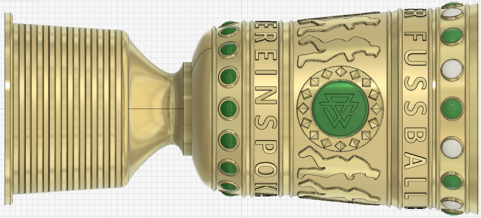 Mô hình 3D phiên bản đơn giản hóa của chiếc cúp vô địch bóng đá Đức (DFB Pokal). Kích thước mô hình bằng với cúp thật là 540mm, bạn có thể tùy chỉnh thu nhỏ hoặc cắt ghép để phù hợp với máy in 3D của mình. Có hướng dẫn in rời các chi tiết trang trí.