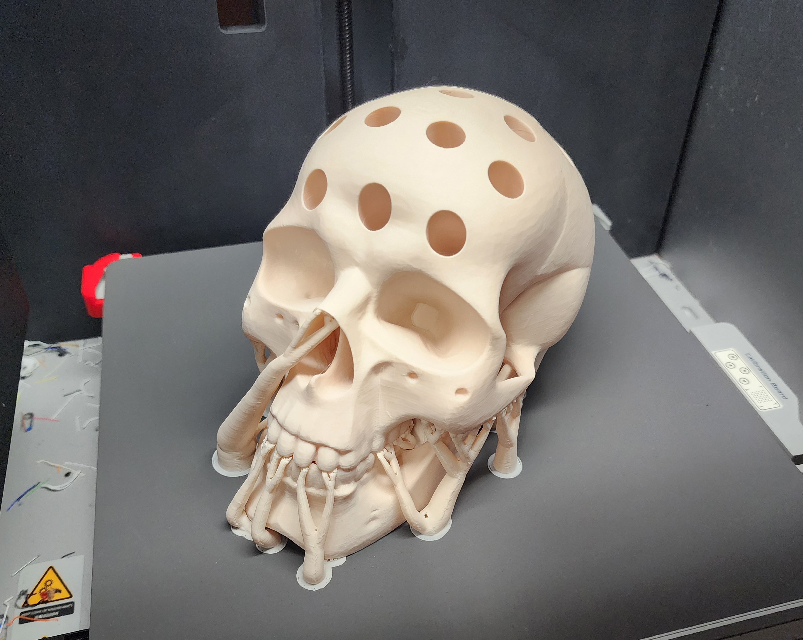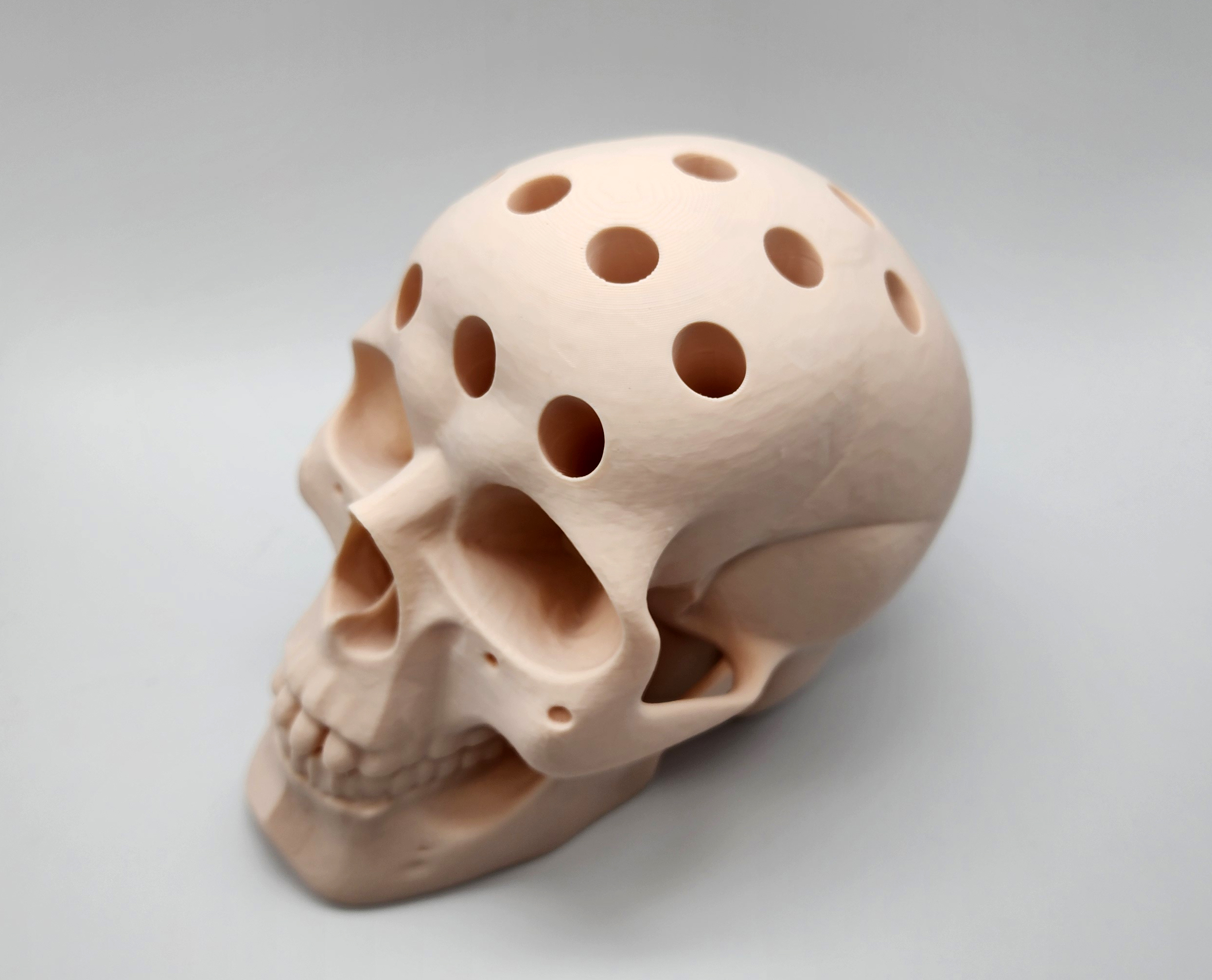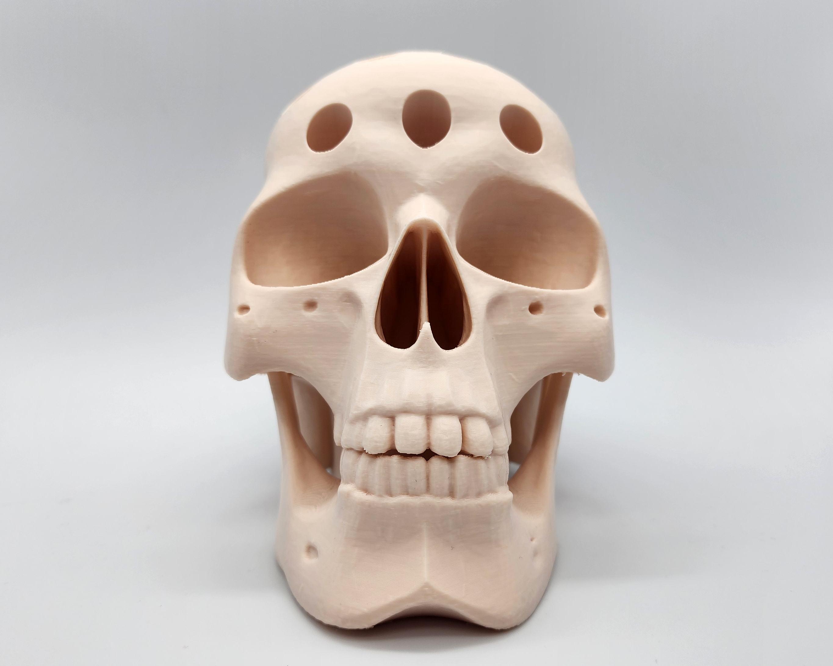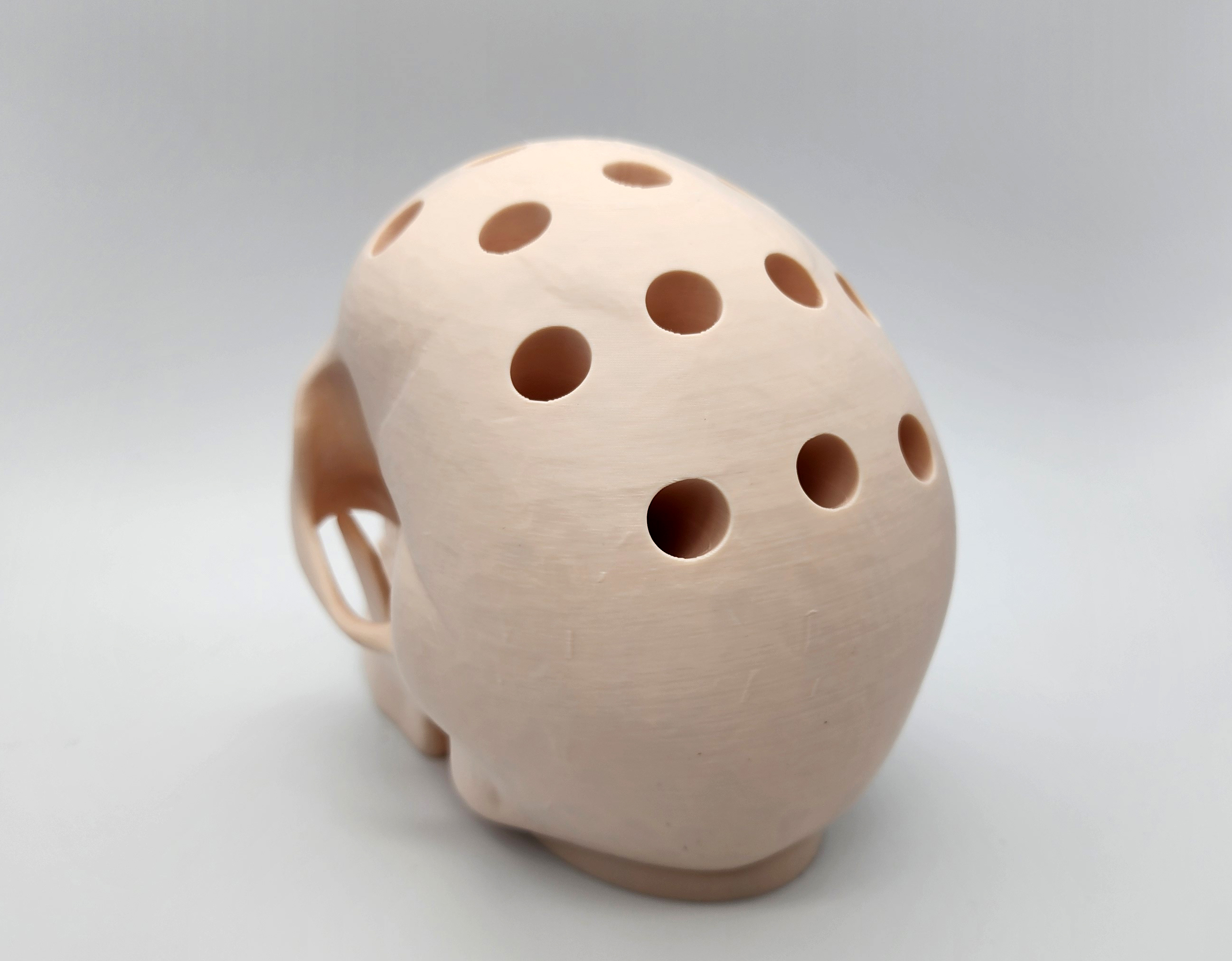 Chiếc hộp đựng bút hình đầu lâu này có thể chứa tới 17 cây bút Sharpies, cọ vẽ, tua vít, hoặc bất cứ vật dụng nhỏ nào khác. Có thể tùy chỉnh kích thước và yêu cầu ít vật liệu hỗ trợ. Lỗ khoan 12mm phù hợp với nhiều loại bút lớn.