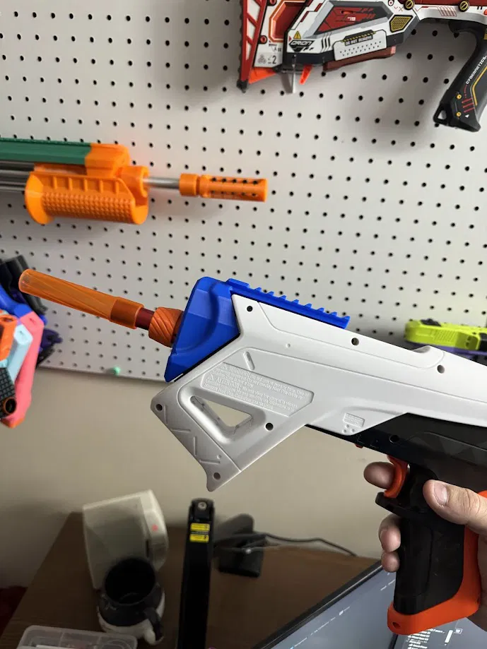 Một bộ phận tiền mặt (frontend) thay thế cho Nerf Pro Torrent. Cái này không cần bất kỳ phần cứng nào, nhưng cần một cái tiền mặt và một cái vòng siết (collet). Cần phải ấn cái nòng (barrel) vào khá mạnh để nó khớp vào cái cổng nạp đạn (dart gate) của súng. Bạn có thể tìm thấy vòng siết (collet) dạng siêu mỏng ở đây: Không có máy in? Đặt hàng từ OOD! Liên kết liên kết!