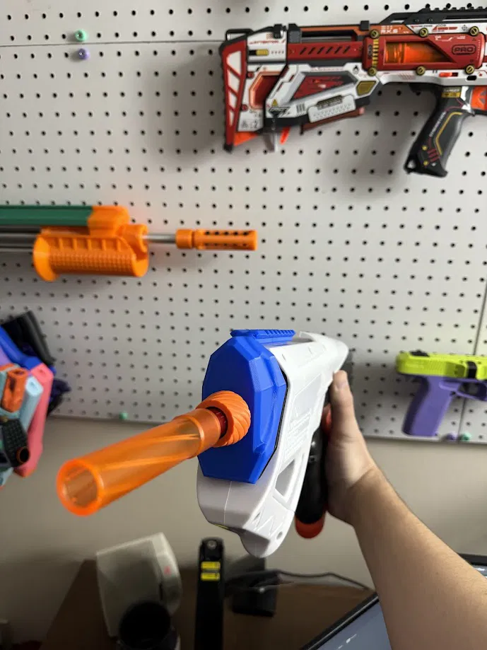 Bộ phận tiền mặt (frontend) thay thế cho Nerf Pro Torrent, cho phép sử dụng nòng 16mm OD mà không cần phần cứng. Cần có vòng siết (collet) và nòng phải được ấn mạnh để khớp vào cổng nạp đạn.