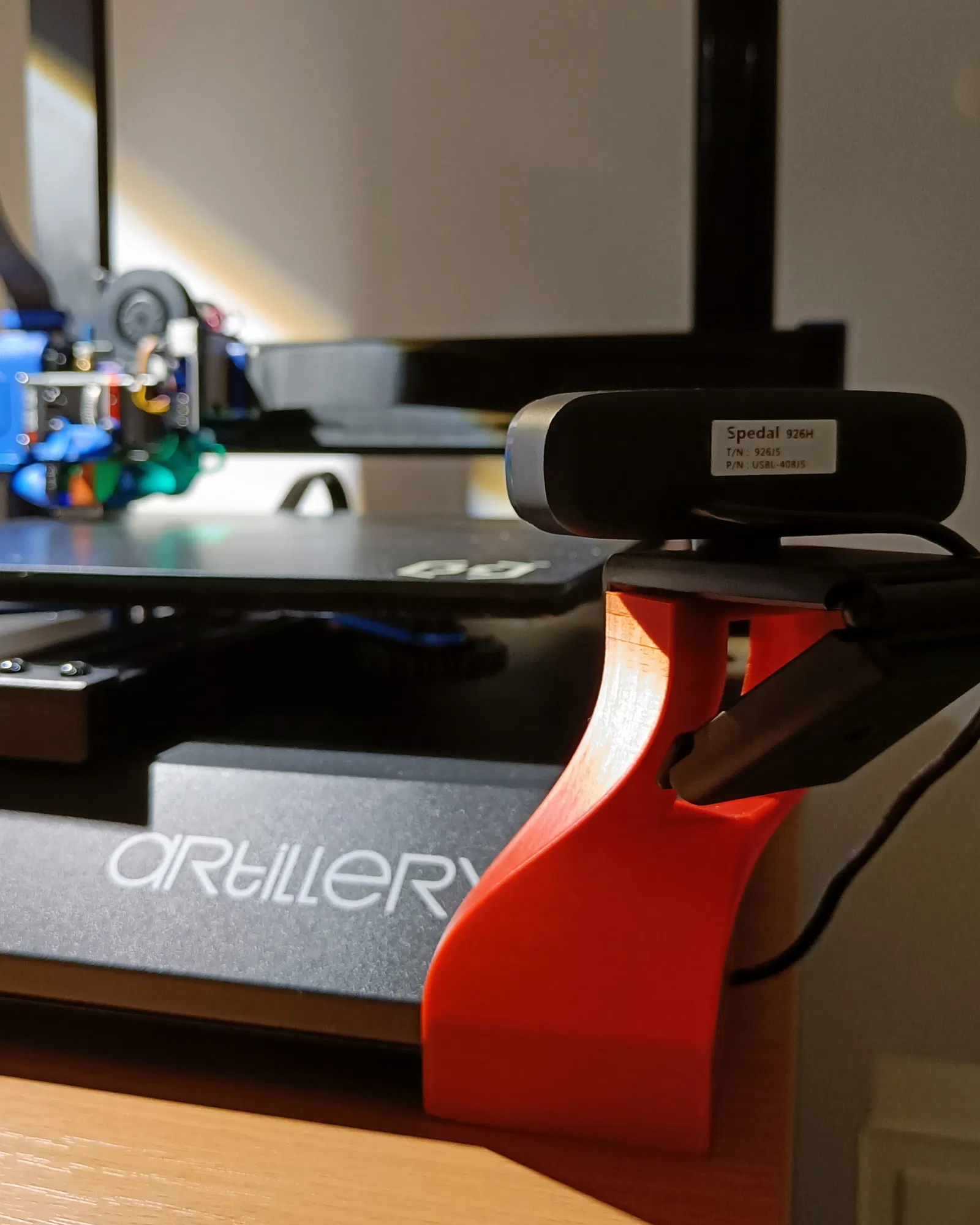 Kẹp hoặc bắt vít webcam của bạn vào đây, kẹp nó bên dưới chân trước bên phải máy in. Dễ in, không cần support. Các phiên bản V3.2 và V3 có các thông số khác nhau về chiều cao, khoảng cách giường, góc và lỗ vít.