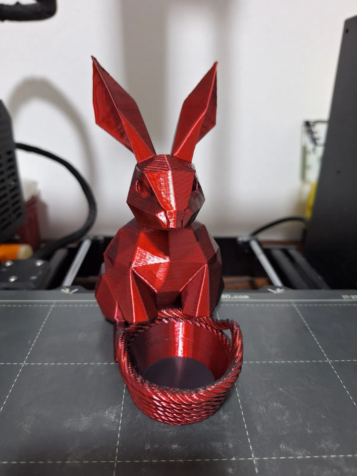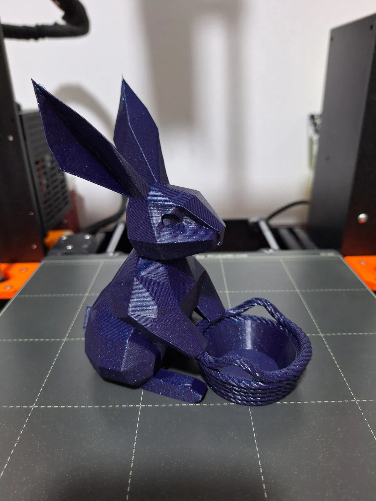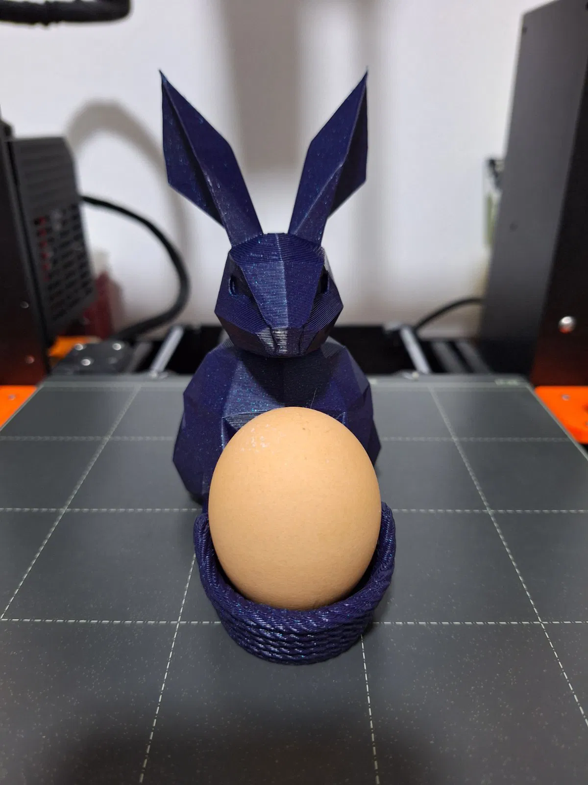 Giỏ đựng trứng Phục Sinh hình thỏ low poly, với thiết kế dễ in, không cần dùng support. Bên trong có đủ chỗ để đặt một quả trứng gà, rất thích hợp cho mùa Lễ Phục Sinh.