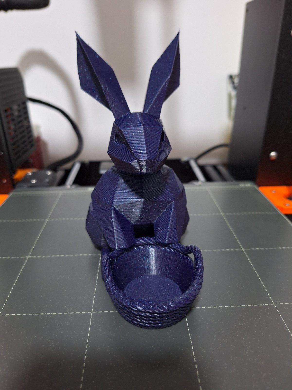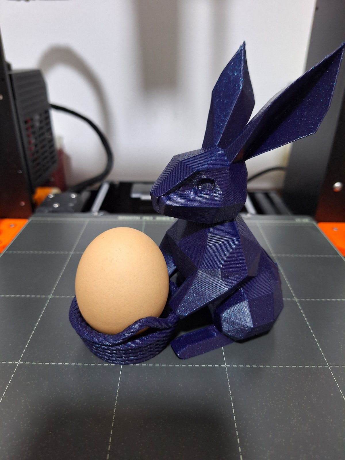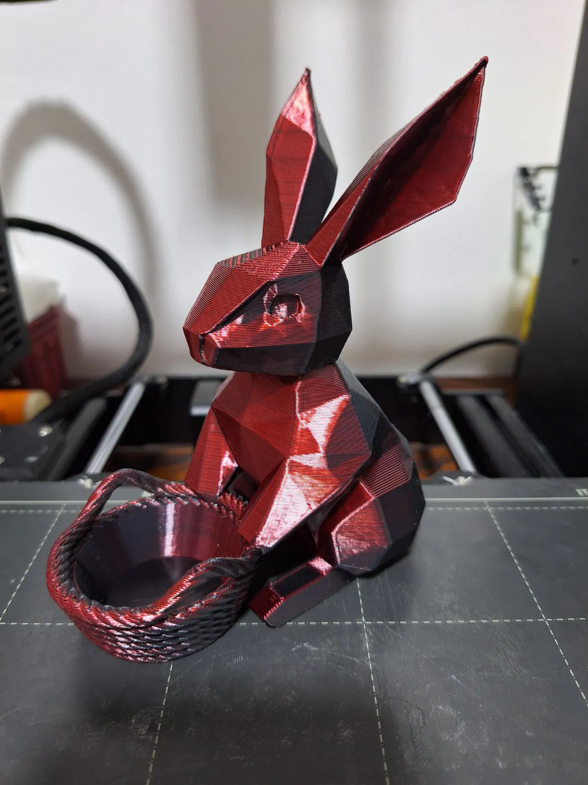 Giỏ đựng trứng Phục Sinh hình thỏ low poly, với thiết kế dễ in, không cần dùng support. Bên trong có đủ chỗ để đặt một quả trứng gà, rất thích hợp cho mùa Lễ Phục Sinh.