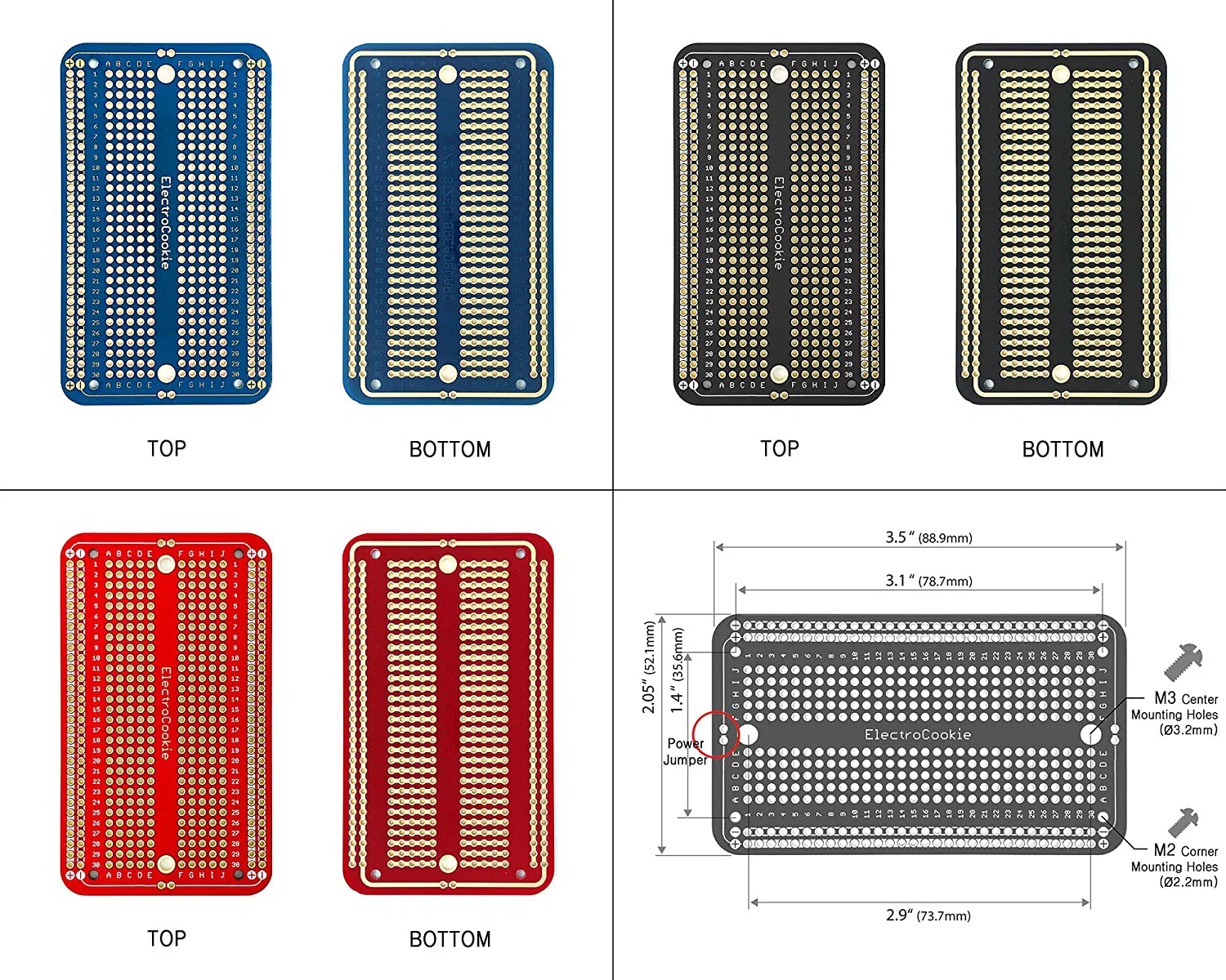 Hộp dự án nhỏ có cả lỗ gắn M2 và M3 cho breadboard cỡ ½ của bạn từ ElectroCookie. Bao gồm 2 lỗ 11mm ở đầu để vừa với phích cắm tròn hoặc vòng đệm.