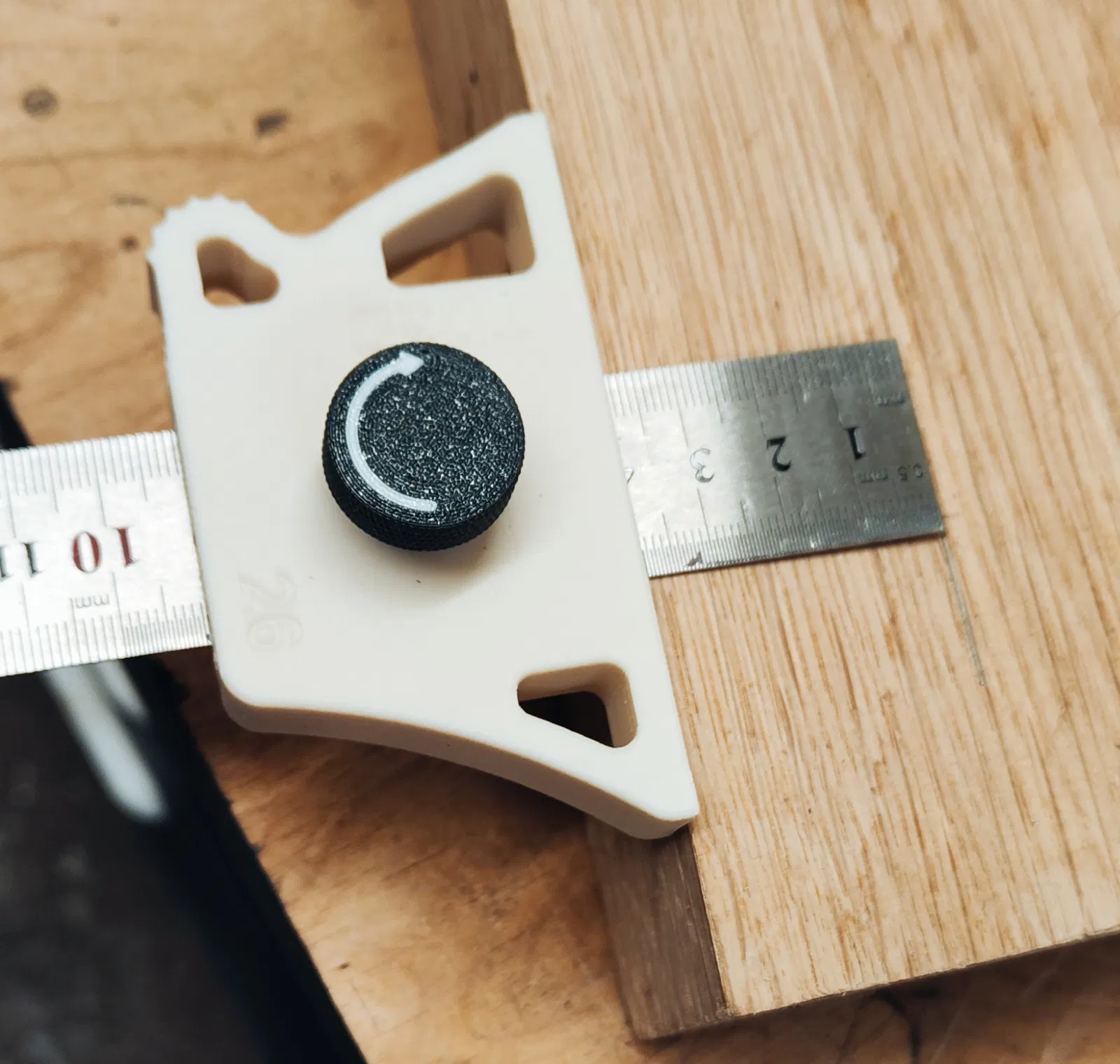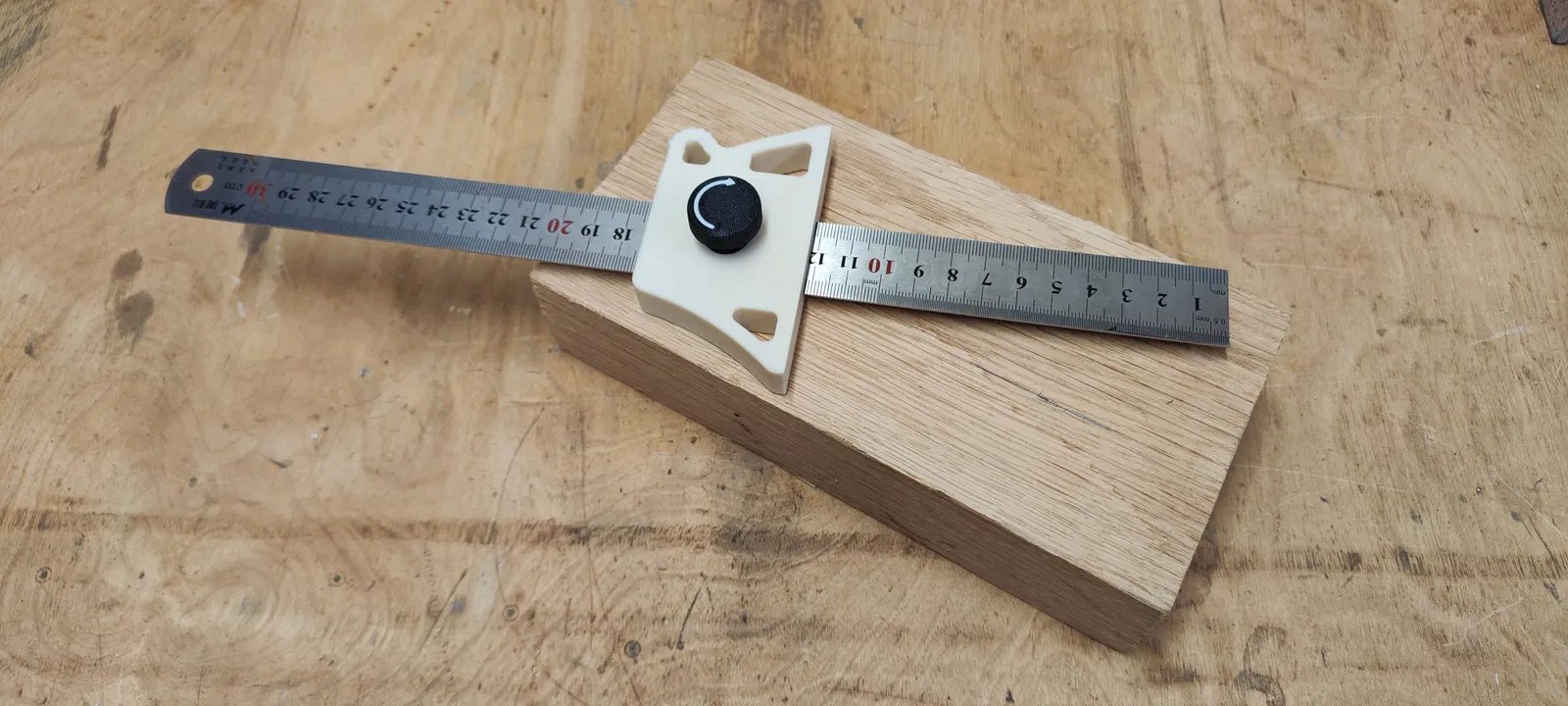 Mô hình dụng cụ đo gỗ, giúp bạn dễ dàng đánh dấu trên thước. Có thể điều chỉnh cho nhiều kích thước thước khác nhau, tay cầm tiện lợi. Phù hợp cho anh em thợ mộc.
