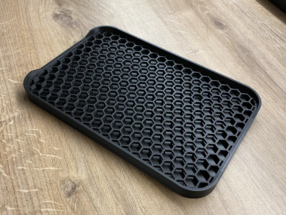Bộ khay hứng nước hình lục giác tổ ong gồm 2 mảnh, đơn giản. Rất hợp với phễu V60-02 và ấm đun nước 600ml. Làm từ PLA, PETG, hoặc ABS.