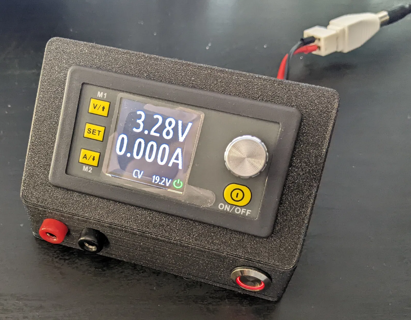Vỏ hộp cho module nguồn DPS5005 hoặc các biến thể khác, tích hợp nút nguồn, jack cắm chuối 4mm và cổng DC barrel jack. Cơ chế khóa được cải tiến với các móc bắt vít. Bản cập nhật v11 điều chỉnh khoảng cách jack chuối theo chuẩn ¾". Lấy cảm hứng từ SnappyDIY và OpenDPS firmware.