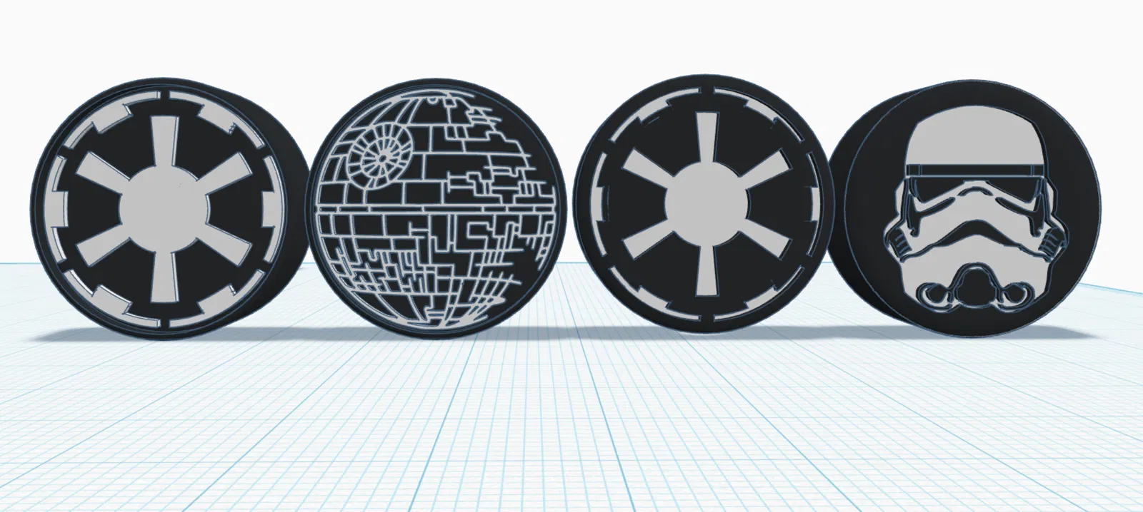 Mình chưa có dịp tự in thử mấy mẫu này vì máy in của mình hiện đang bận. Mình thiết kế chúng theo hướng đơn giản, chỉ có một mặt là logo, để có thể in phẳng. Có tùy chọn thay đổi filament ở một số lớp nhất định để thêm các chi tiết màu trắng. Chỉ có mẫu Death Star là mình hơi băn khoăn liệu logo có in ra rõ không vì nó khá nhỏ.