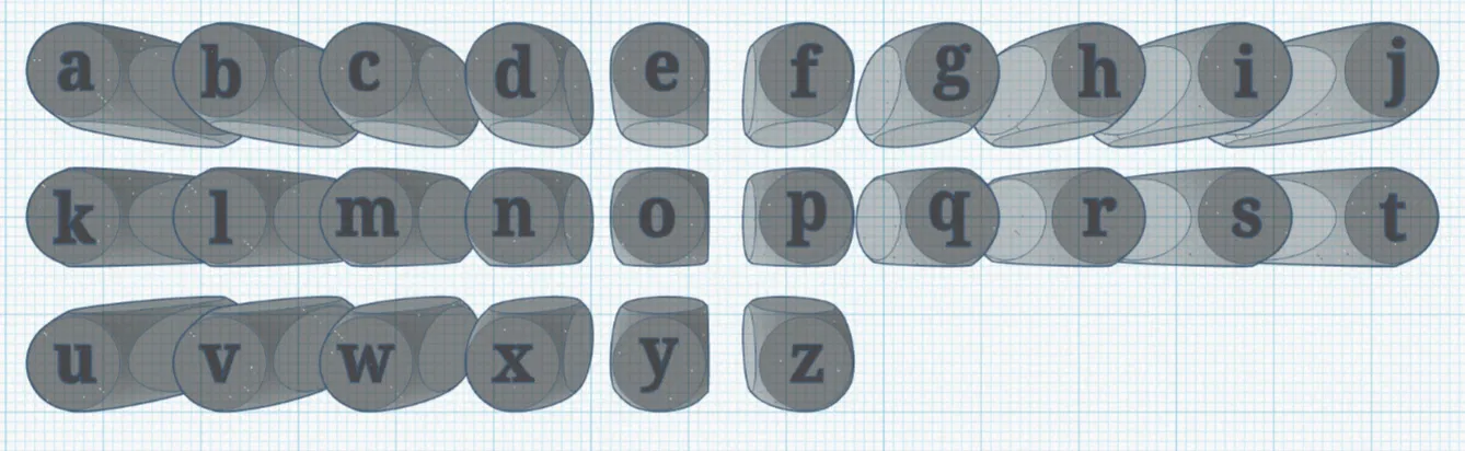 Đối với con dấu, in ở chế độ 0.30mm cho đến hết chữ, sau đó chuyển sang 0.10mm. Đối với hộp đựng, in ở chế độ 0.30mm cho toàn bộ. In 2 hộp nếu bạn in cả bộ chữ hoa và chữ thường. Sử dụng sợi PLA hoặc bất kỳ loại nhựa cứng nào khác.