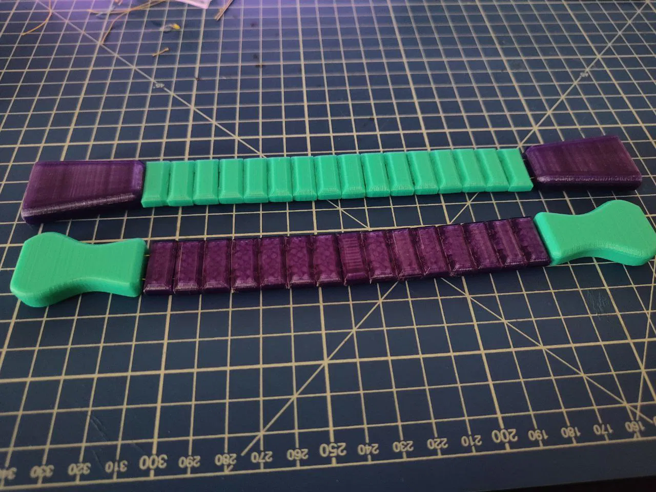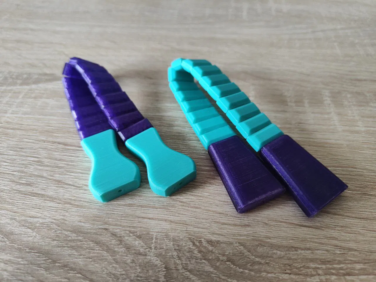 Tôi in chuỗi hạt này từ nhựa PETG. Độ điền đầy 100% theo khối lượng. Để so sánh, tôi dùng dây bện; nó không bị mòn trong quá trình sử dụng.