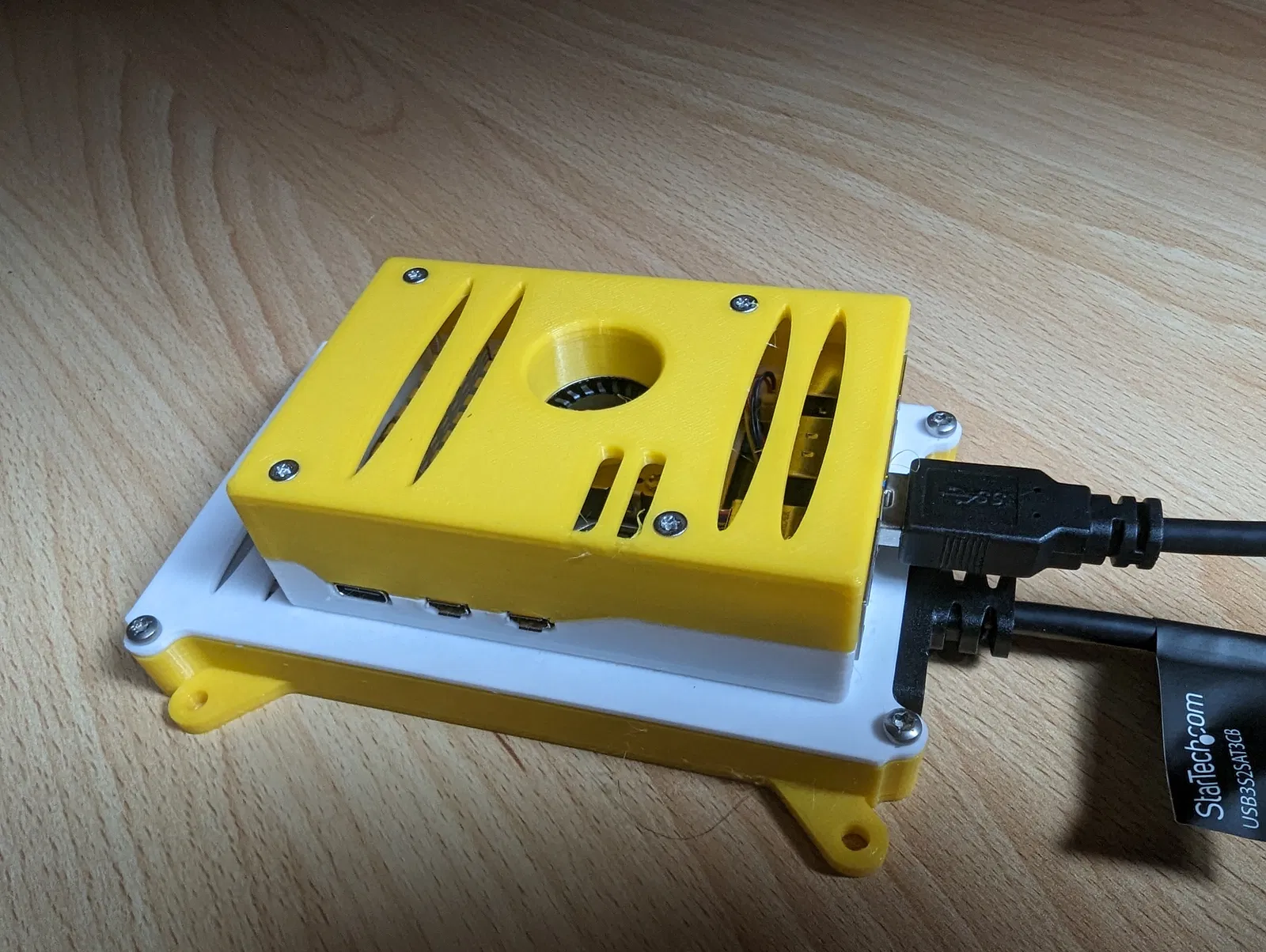 Phiên bản tản nhiệt chủ động mới cho Raspberry Pi 5, tích hợp đế gắn SSD/HDD 2.5" linh hoạt. Hỗ trợ tản nhiệt chính hãng và M.2 HAT+, có thể gắn nhiều SSD. Kèm script theo dõi nhiệt độ và tốc độ quạt.
