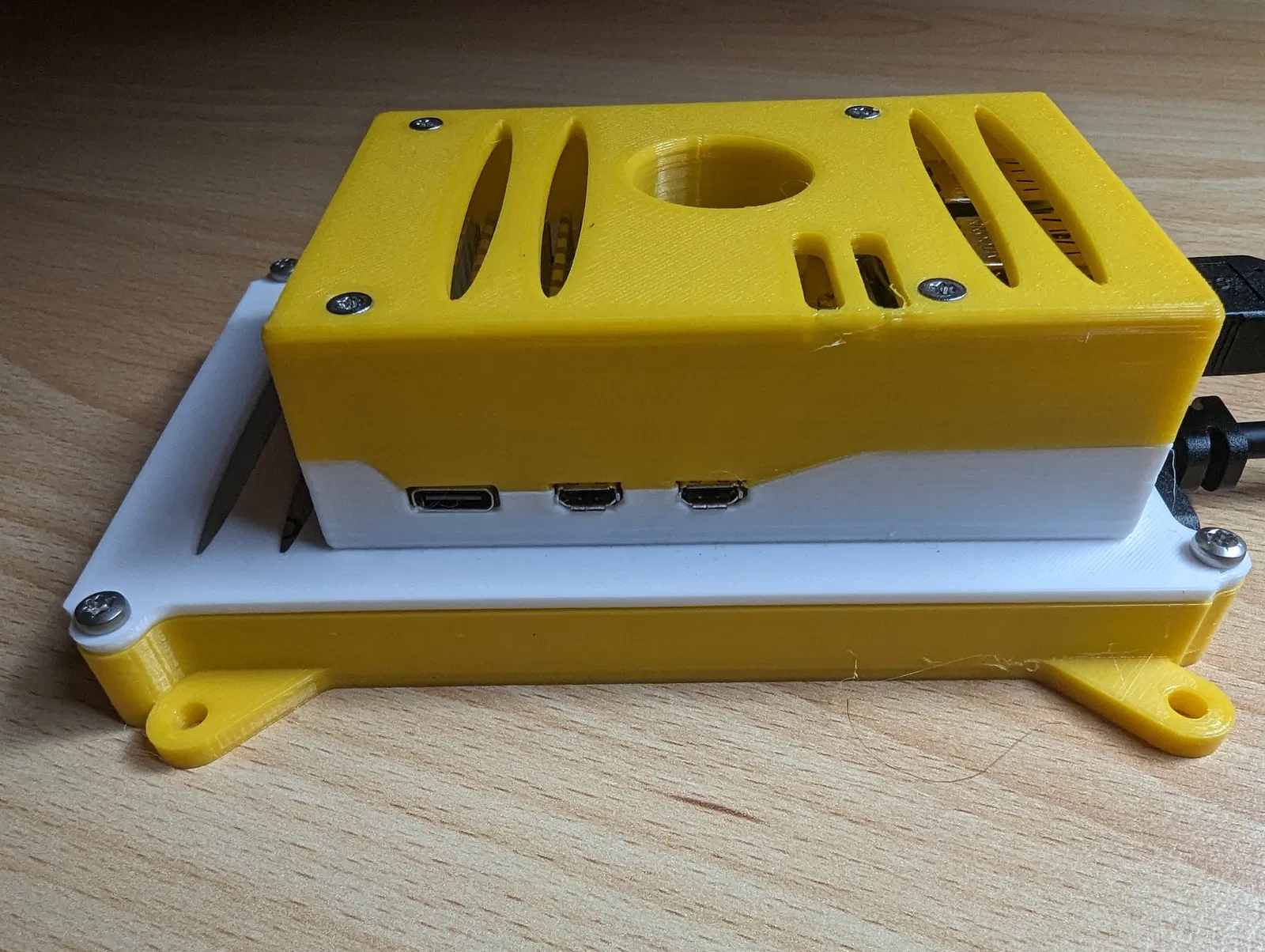 Rất mong nhận được các bản in (make) nha! Anh em xem thêm phiên bản cho Raspberry Pi 4 của mình nha: https://www.f3d.vn/3d-model/69749-tieu-de-vo-raspberry-pi-4-co-gan-ssdhdd-25-tom-tat-vo-raspbe CẬP NHẬT 16.03.2025: Thêm file pi5_case_top_m2hat_nogpio_vents_allover. Phần vỏ trên này hỗ trợ tản nhiệt chủ động Raspberry Pi và M.2 HAT+ luôn nha. https://www.raspberrypi.com/products/m2-hat-plus/ https://www.raspberrypi.com/products/ssd/ https://www.raspberrypi.com/products/active-cooler/ CẬP NHẬT 22.11.2023: Thêm file raspifan.sh. Script Shell cho Linux để đọc nhiệt độ, tần số và tốc độ quạt (của tản nhiệt chủ động chính hãng). (Trong file raspifan.zip) CẬP NHẬT 11.11.2023: Thêm file rpi3b-2.5drive_b14_notch_with_screw_holes để gắn SSD bằng ốc M3 và cũng thêm pi5_case_button_Symbol_new Mấy cái SSD có thể