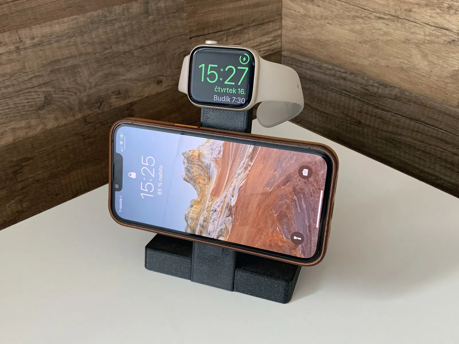 Cái đế này là để sạc iPhone và Apple Watch bằng sạc không dây chính hãng của Apple. Trong thiết lập này, tôi sử dụng Sạc MagSafe của Apple và Sạc nhanh từ tính của Apple Watch. Có hệ thống quản lý cáp bên dưới đế Đế (xem hình).