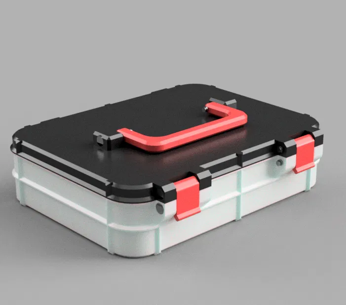 Hộp có tay cầm, kích thước ngoài 204x170x62mm và kích thước trong 196x146x50mm. Hộp này được thiết kế để in không cần support, với các cài đặt gợi ý như layer 0.1mm, 4 lớp tường và infill 30%. Có thể dùng PETG hoặc PLA. Video hướng dẫn tháo lắp và danh sách ốc M3x8 đi kèm.