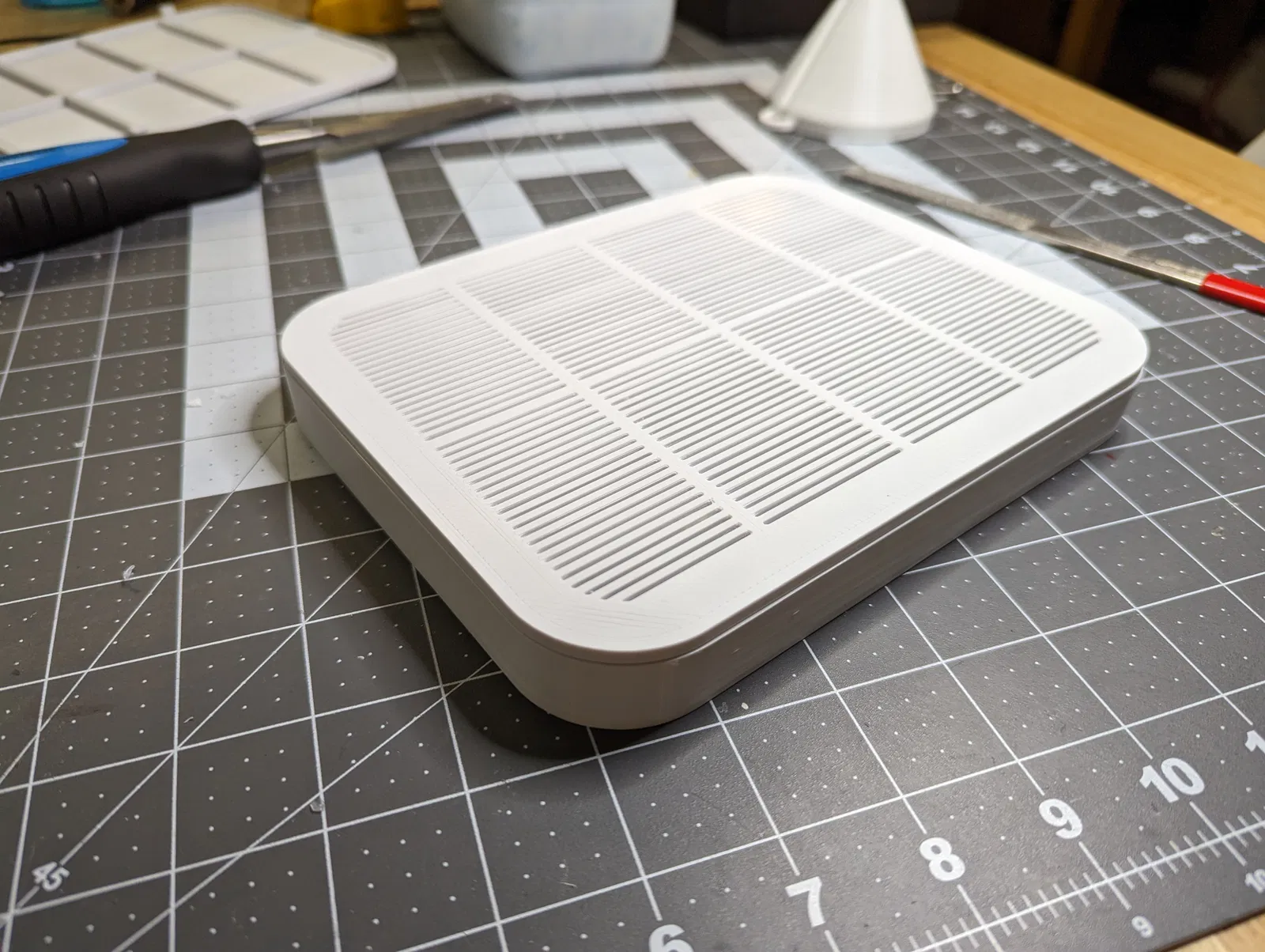 Bản cập nhật v2 tại đây: Khay đựng hạt hút ẩm cỡ lớn, kích thước 6.25" x 8" x 0.9", có cấu trúc hỗ trợ bên trong cho phép xếp chồng vật nặng lên trên. Bạn có thể vô tư xếp các cuộn filament lên trên hộp đựng hạt hút ẩm này nhé. Cài đặt in của tui: * Đầu phun .6mm