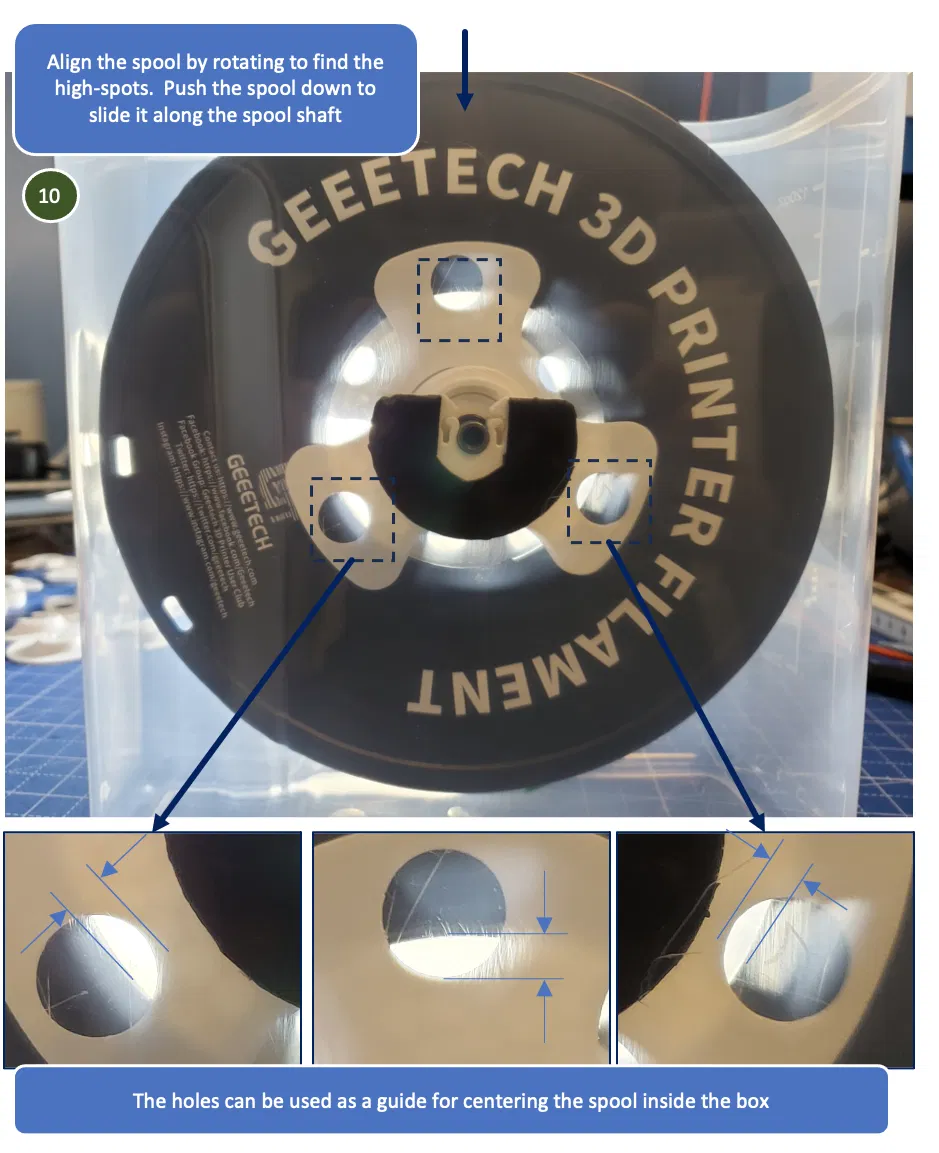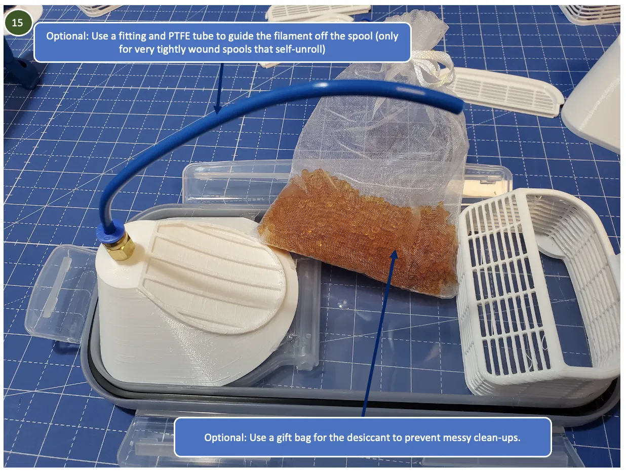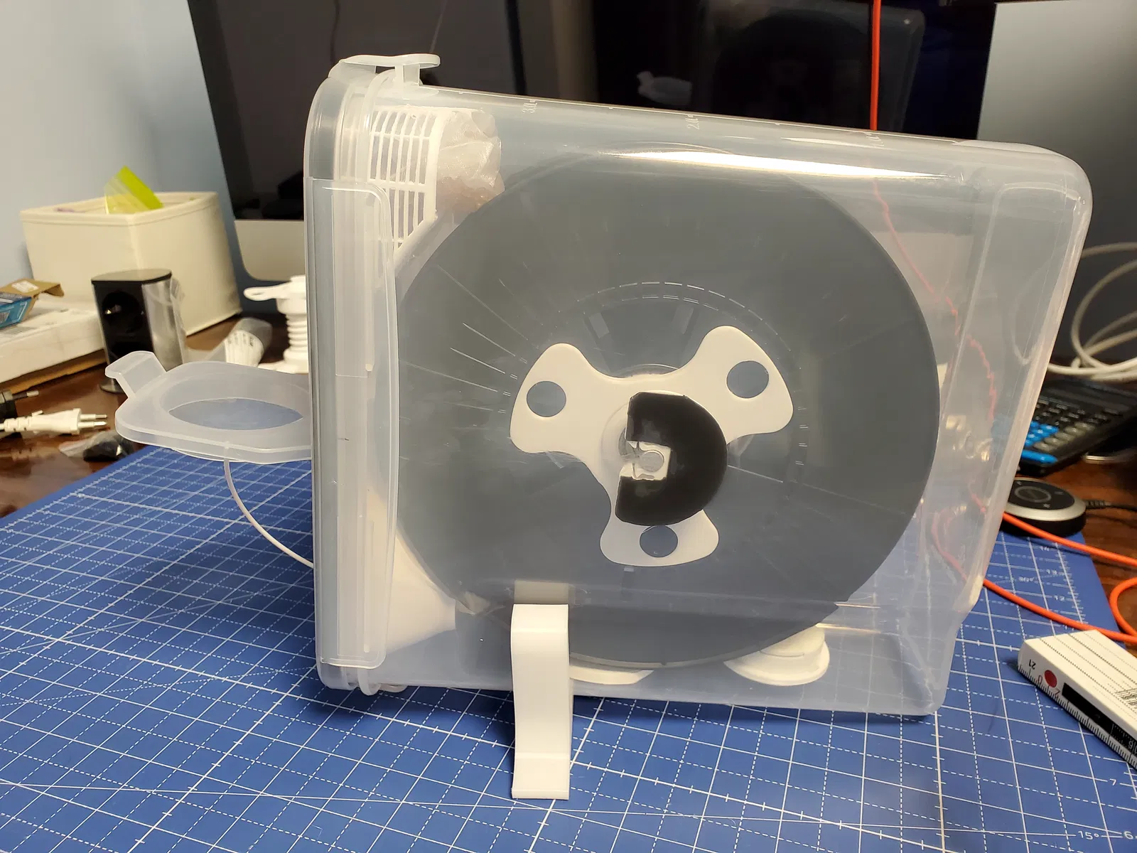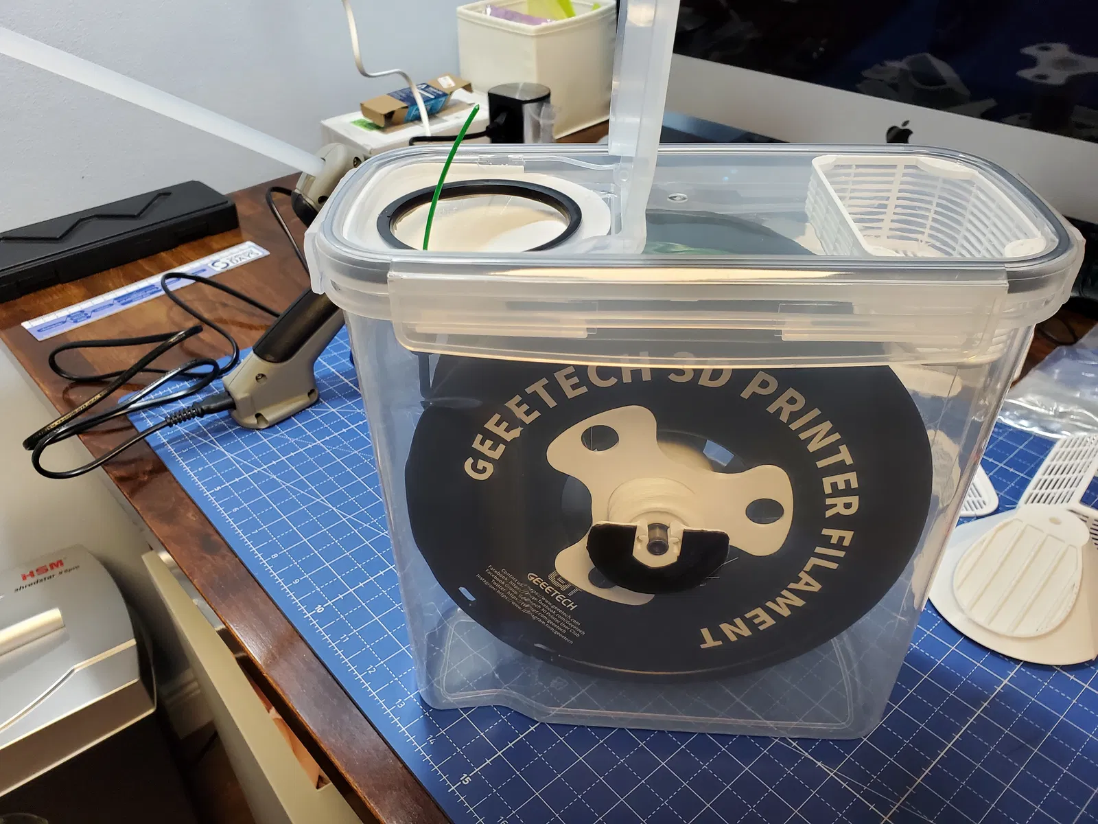 Tôi là một người in 3D nghiệp dư, nên tôi có rất nhiều loại filament khác nhau từ nhiều nhà cung cấp. Tôi cần một giải pháp để giữ cho chúng khô ráo cho đến khi tôi cần dùng lại. Tôi chỉ có một yêu cầu đơn giản: không làm ảnh hưởng đến khả năng kín khí của hộp. Điều này có nghĩa là không được khoan hay bắt vít xuyên qua hộp.