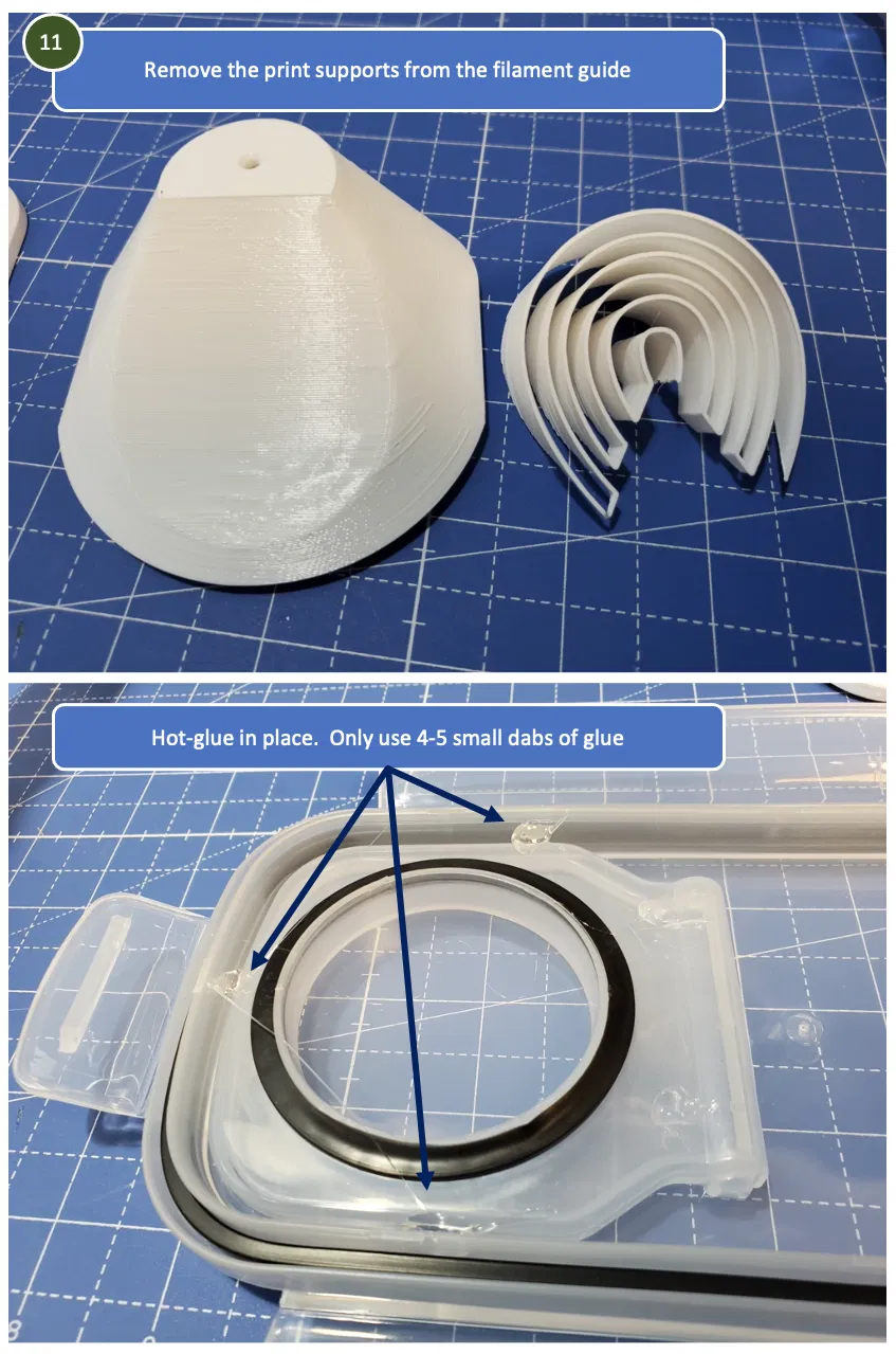 - Bạn sẽ cần súng bắn keo để cố định bộ dẫn filament và ngăn chứa chất hút ẩm.