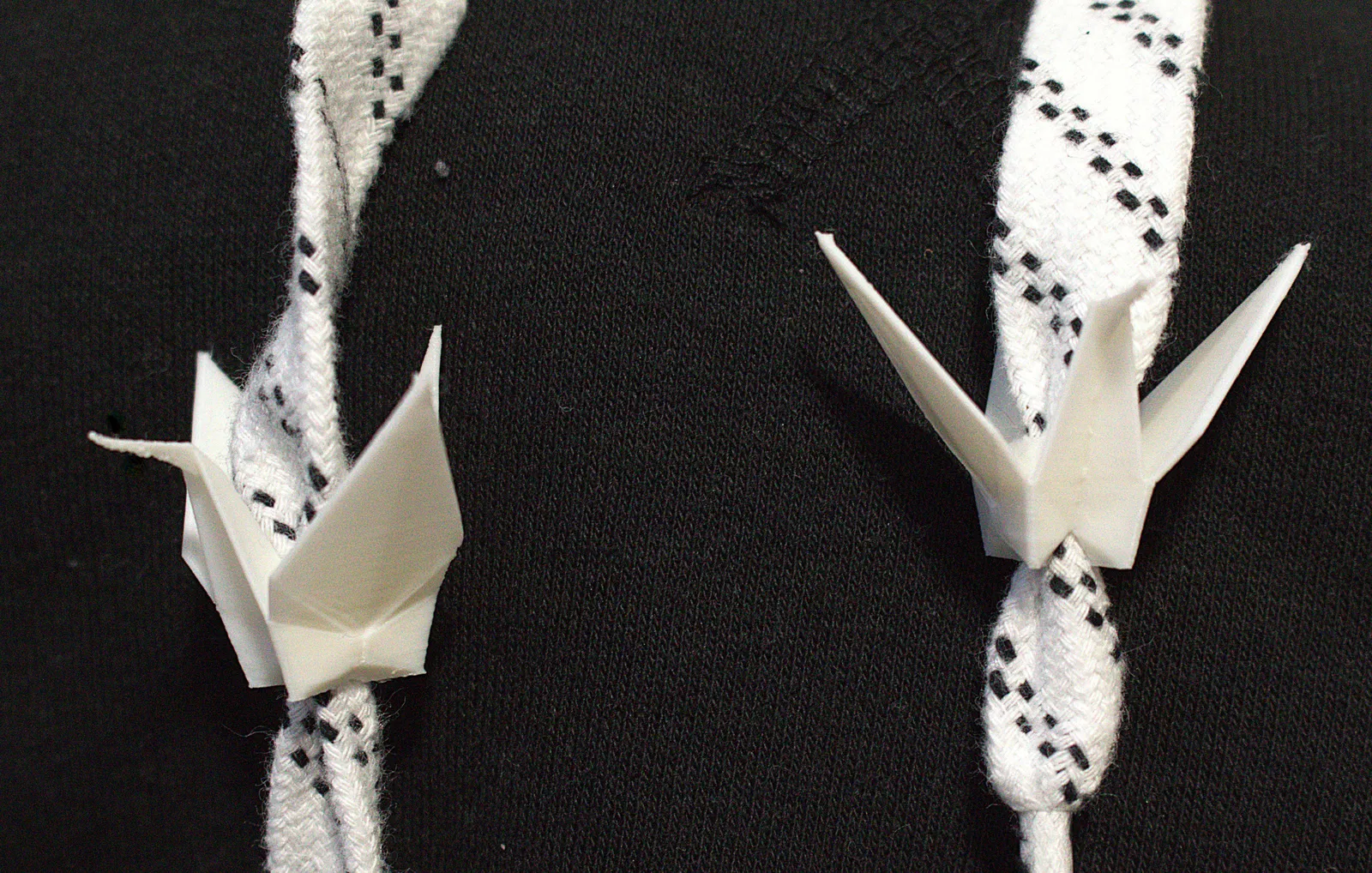 Hạt chuỗi hình Hạc Origami, tuyệt vời để làm trang sức hoặc làm phụ kiện cho dây áo hoodie. Bạn có thể in với layer height 0.12 để có chi tiết sắc nét, fill 100% để đảm bảo độ bền, và dùng supports cho phần đầu. Brim là tùy chọn thêm.