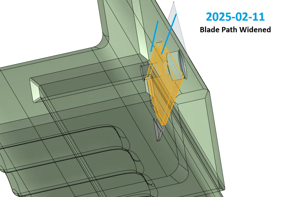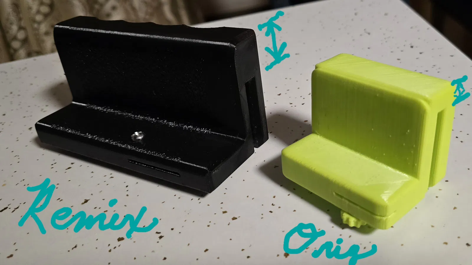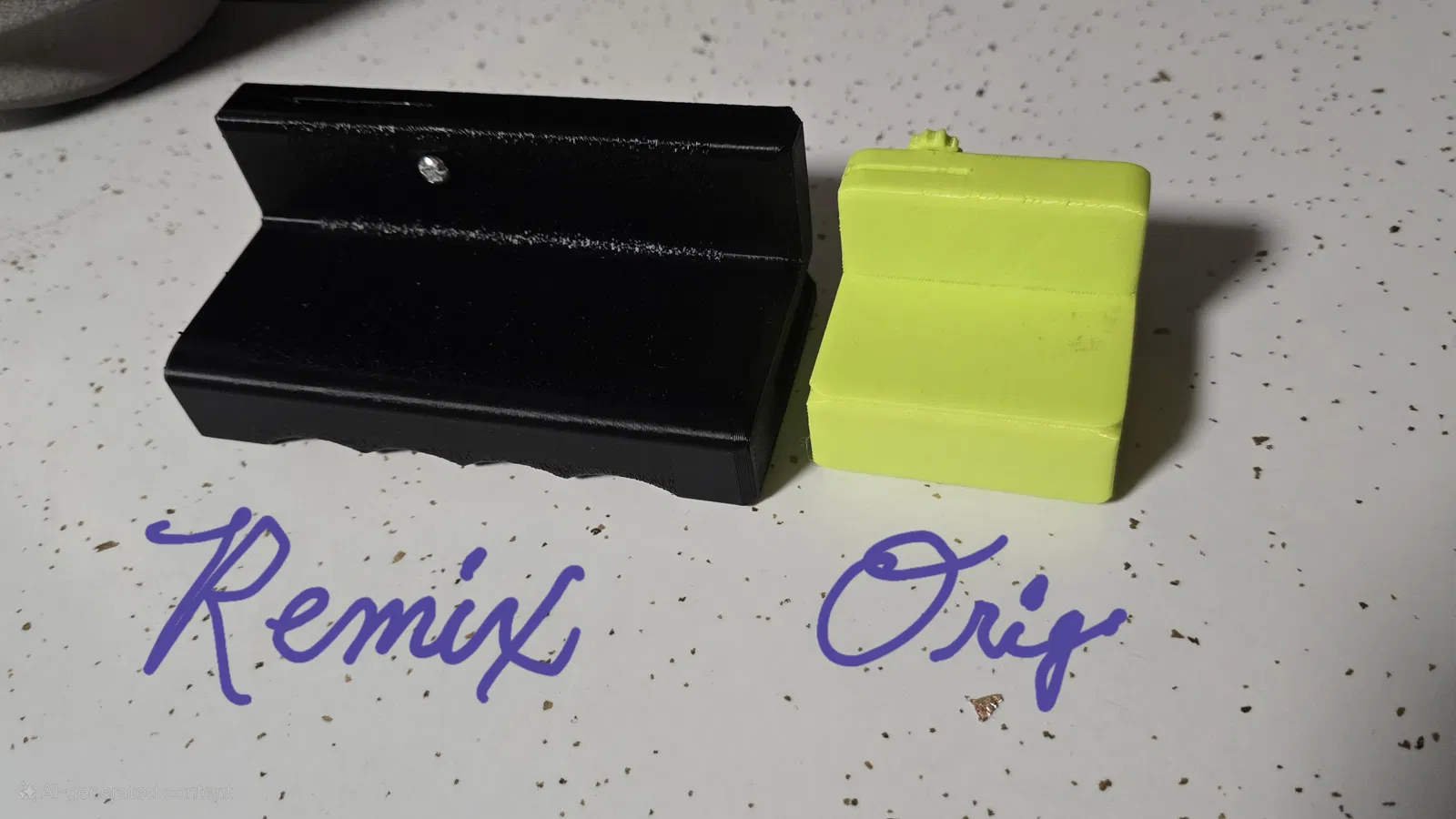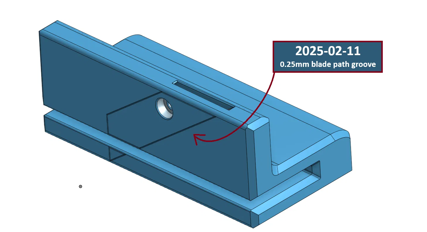 - Để kiểm tra các thay đổi của mình, tôi đã tạo ra một mẫu cắt nhỏ của mô hình, chỉ giữ lại phần lớn đường dẫn lưỡi dao và lỗ vít, để kiểm tra dung sai. Đây là file "test shark" (cá mập thử nghiệm), vì tôi nghĩ nó trông hơi giống cá mập hoạt hình. Tôi nghĩ nó có thể hữu ích cho những ai muốn tự kiểm tra dung sai/khoảng hở trước khi in toàn bộ mô hình.