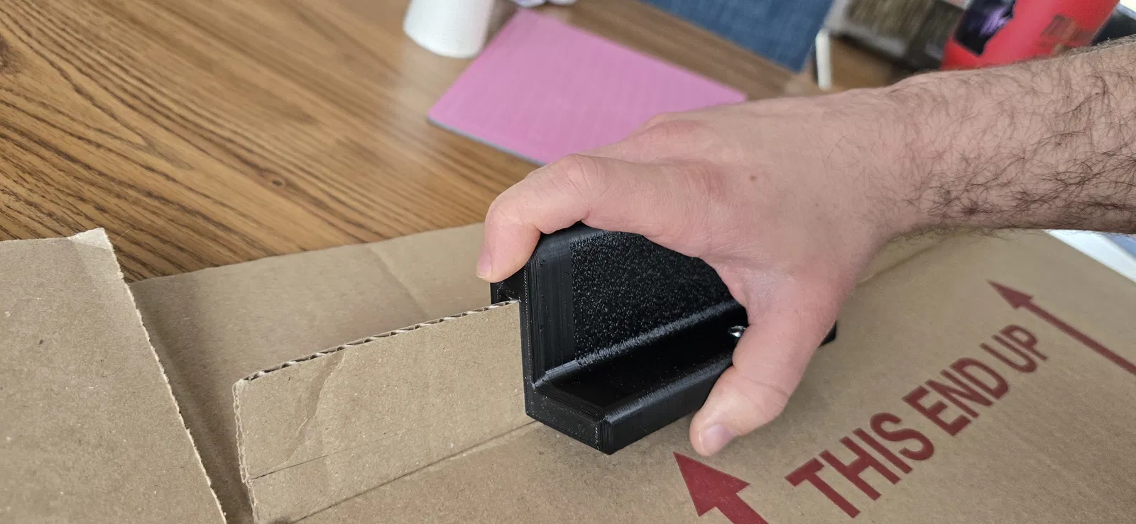 Phiên bản V2 của dụng cụ cắt bìa carton "Chonkified Cat Scratcher" được thiết kế dài hơn, cao hơn và công thái học hơn. Bản cập nhật mới V9 còn cải tiến thêm về rãnh lưỡi dao, lỗ vít và thêm chi tiết hướng dẫn. Có cả file "test shark" để kiểm tra dung sai trước khi in.