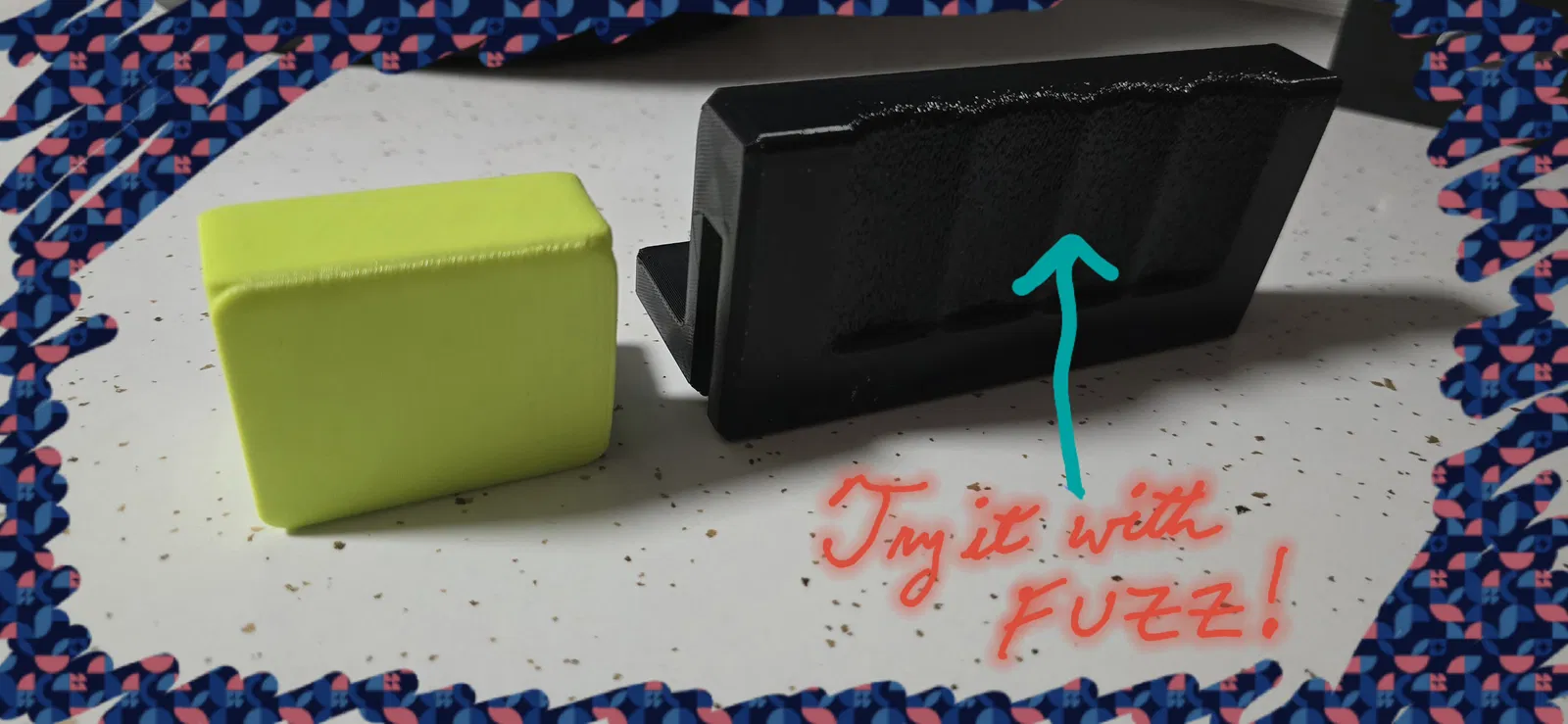 - (File 3mf, PrusaSlicer) Tôi đã sửa một vài chỗ để dùng "fuzzy skin" (lớp da mờ). Trông đẹp lắm, tăng độ bám.